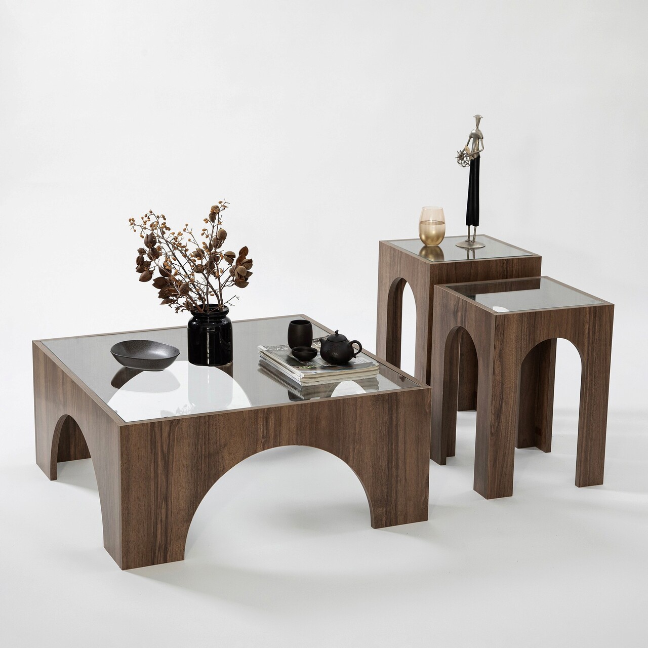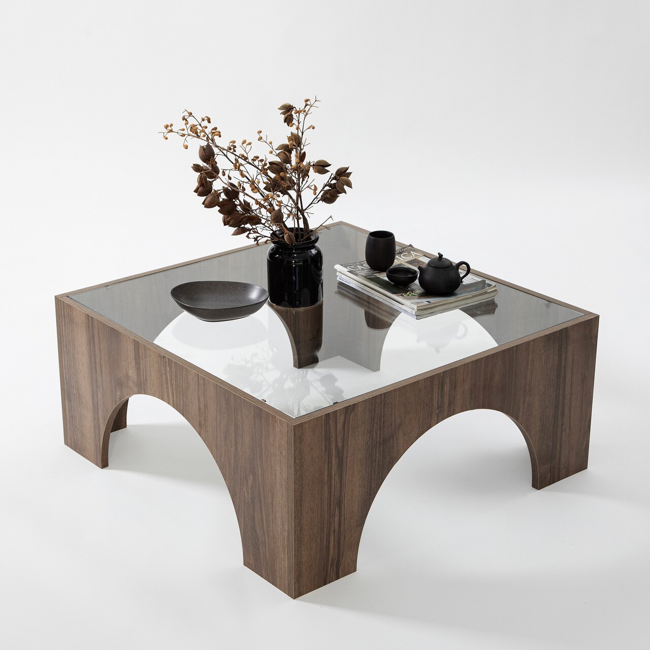 Masuta de cafea, Neostill, Seine, 80x35x80 cm, Sticla temperata, Transparent/Nuc