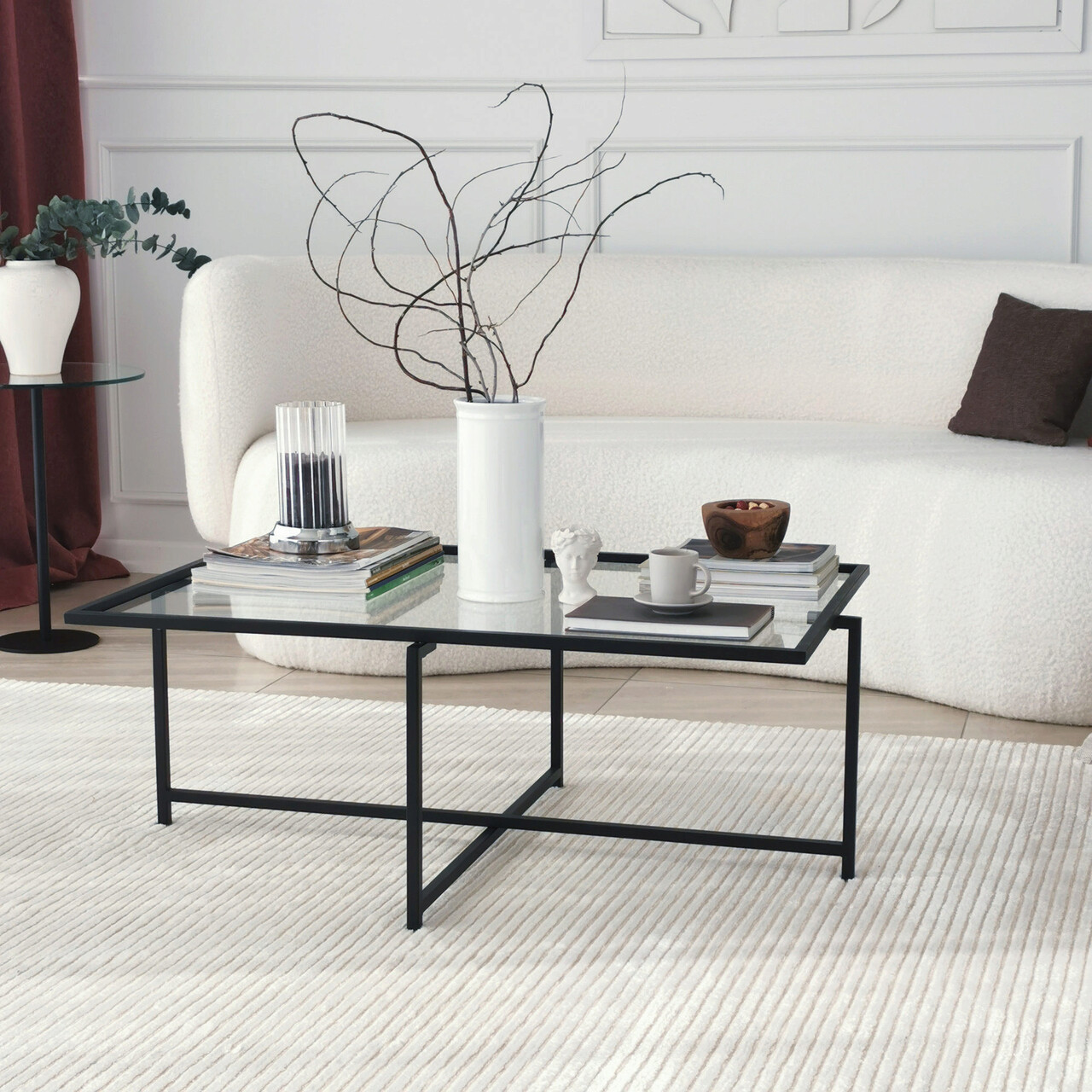 Masuta de cafea, Neostill, Sun S408, 94x35x64 cm, Sticla temperata, Negru