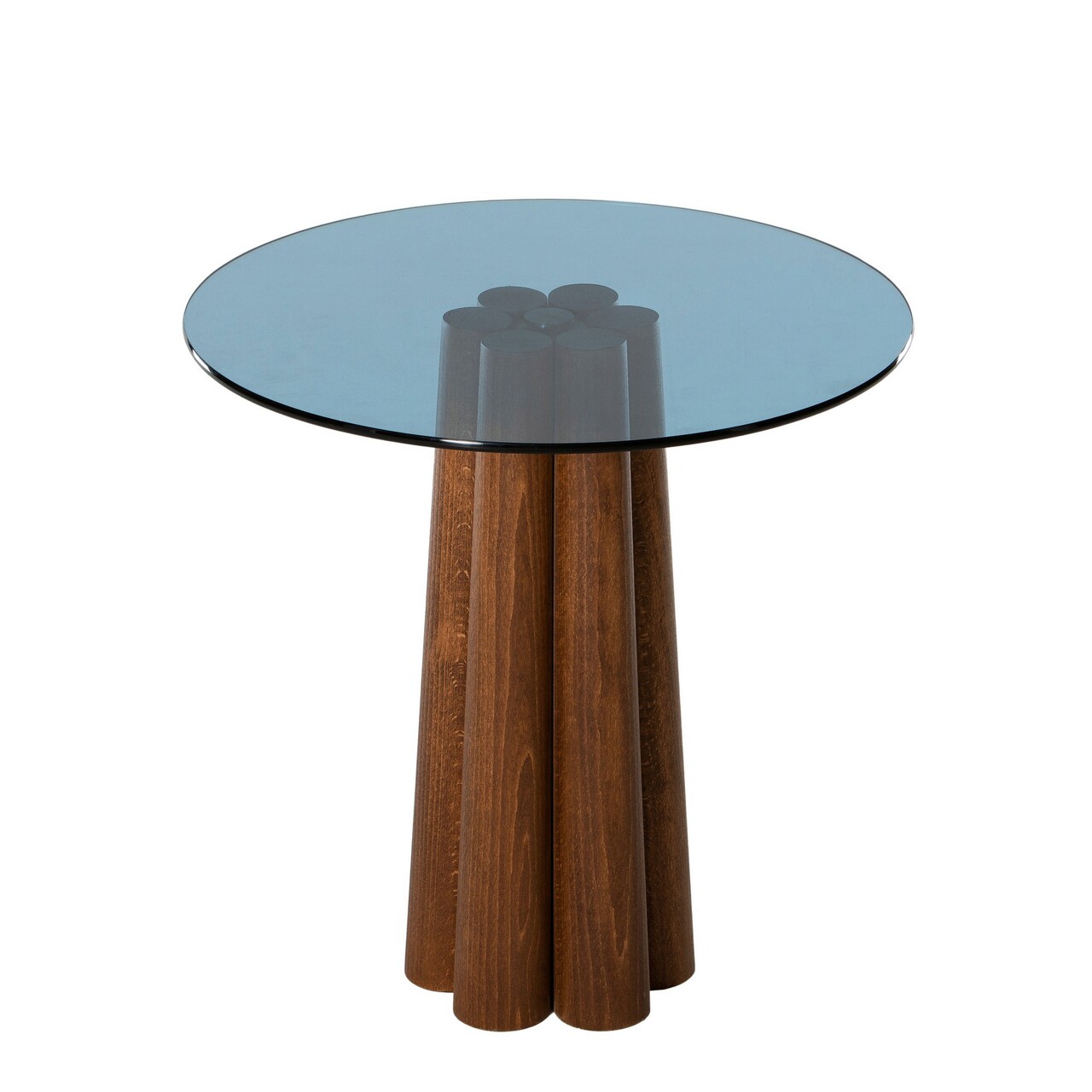Masuta de cafea, Neostill, Thales Walnut, Albastru, 50x50x50 cm, Sticla temperata, Nuc / Albastru