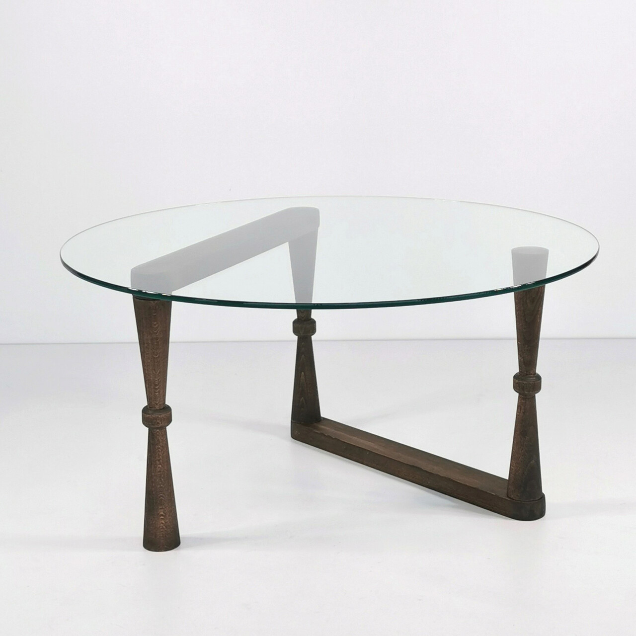Masuta de cafea, Neostill, Yuvarlak Cam Orta Sehpa S301, 80x41x80 cm, Lemn de fag, Maro