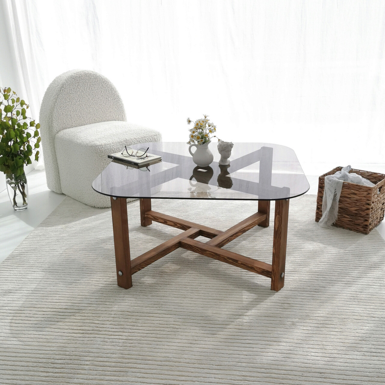 Masuta de cafea, Neostill, Zen, 80x40x80 cm, Sticla temperata, Stejar