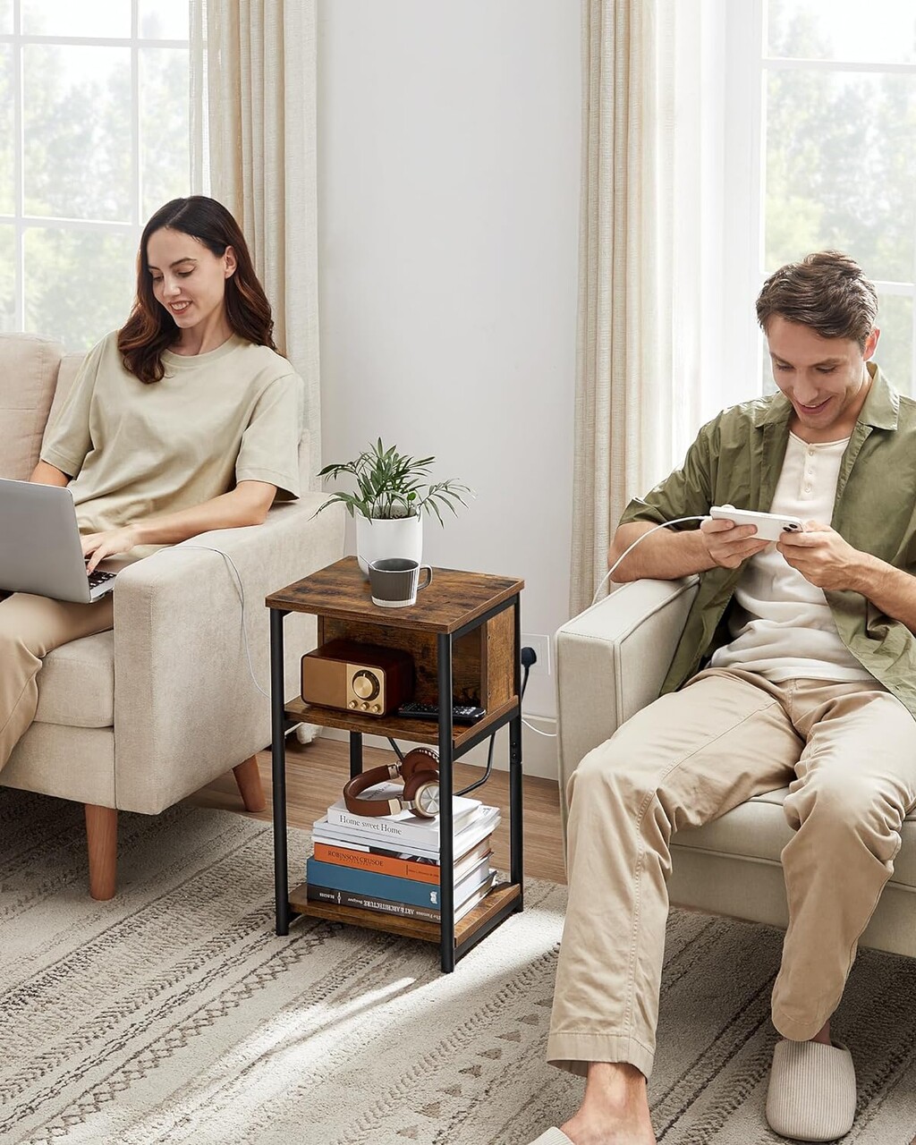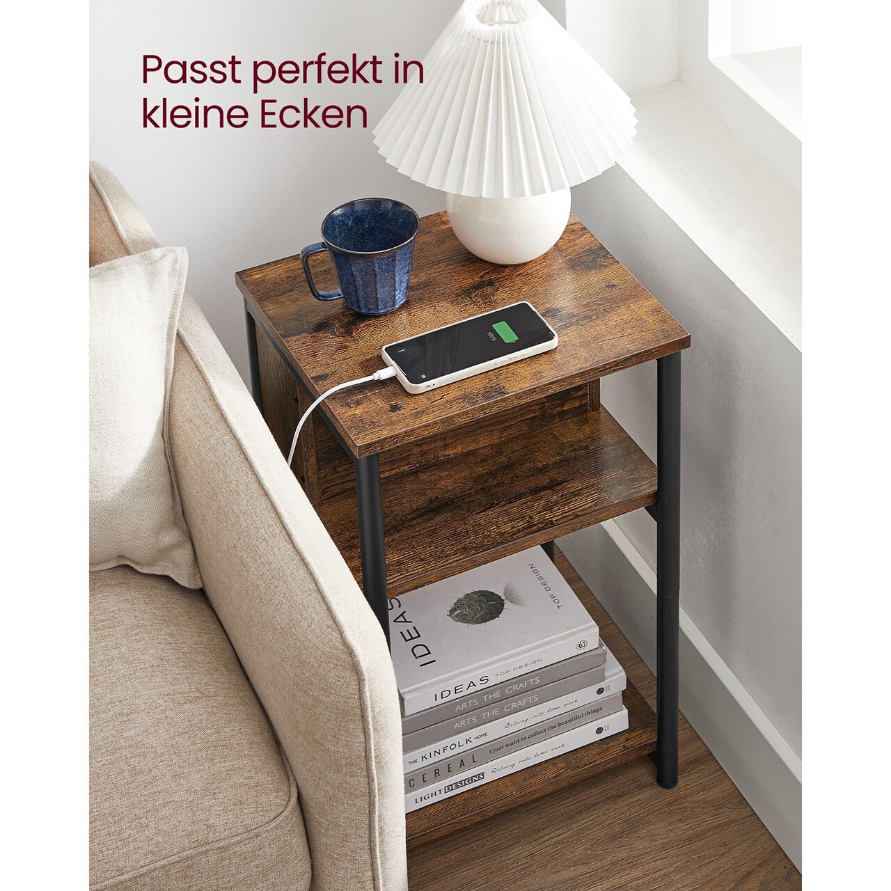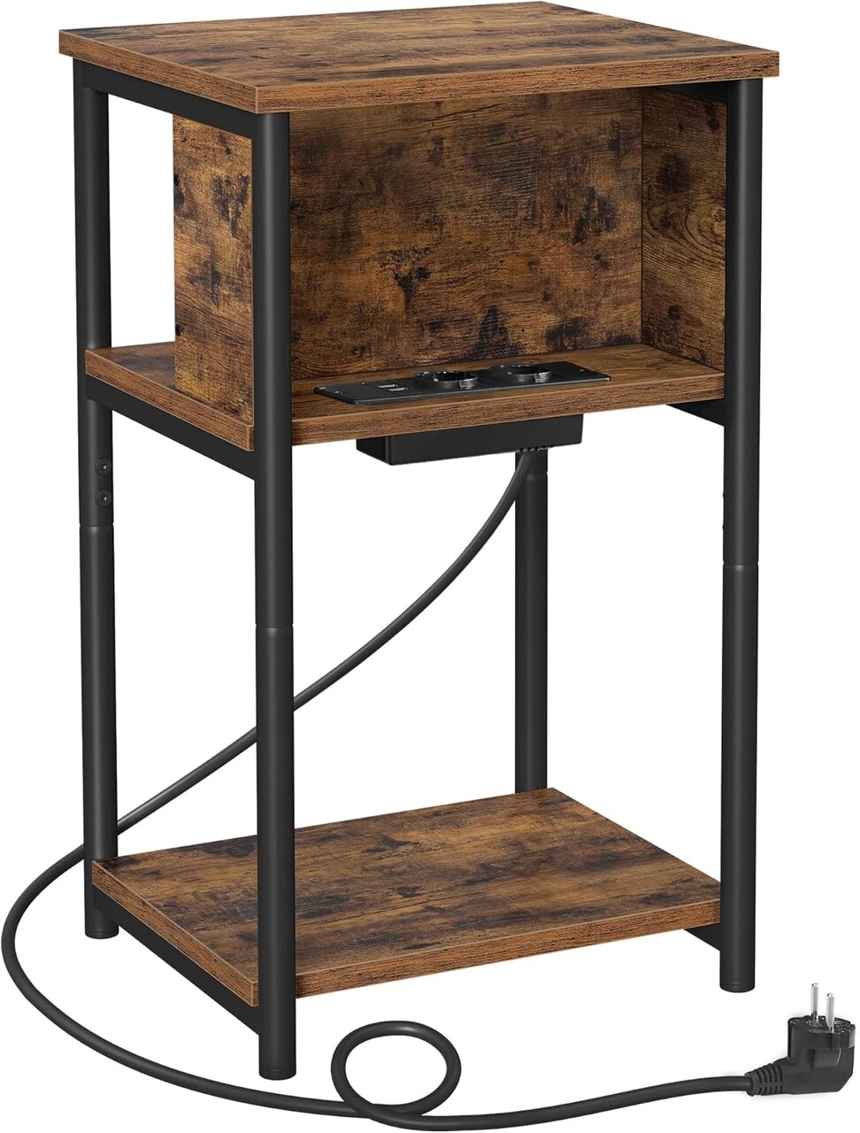 Masuta de cafea / noptiera cu priza si USB, Vasagle, 34x30x58 cm, PAL/otel, maro