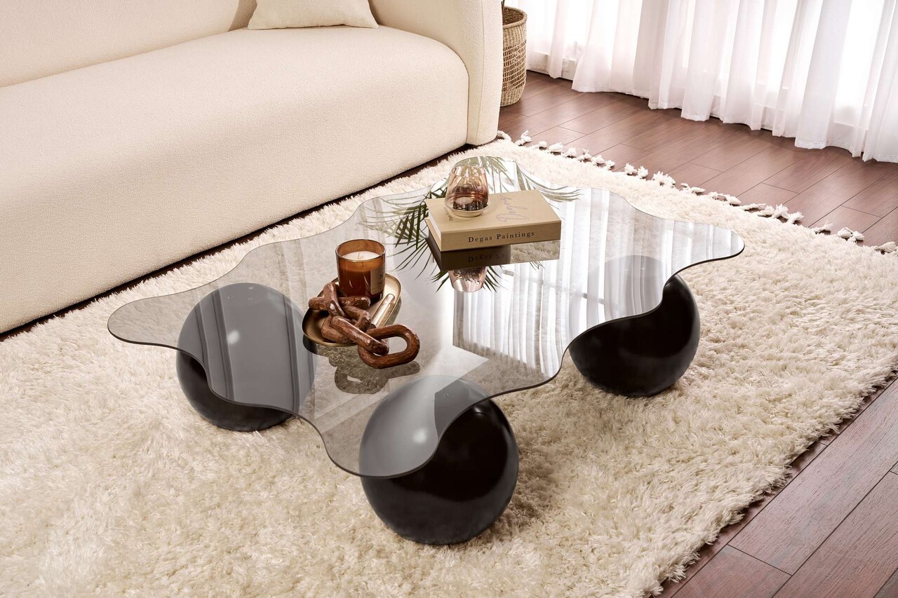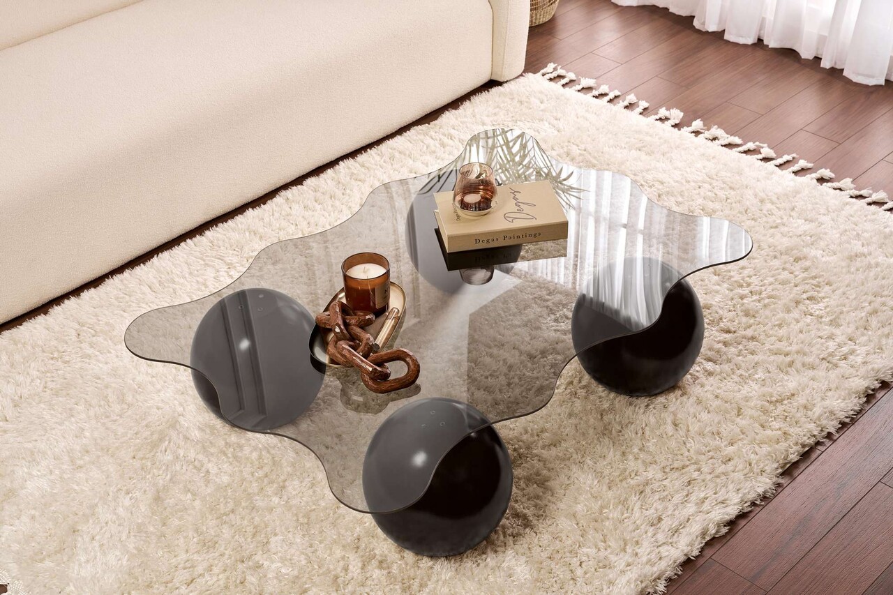 Masuta de cafea, Nordure, Noxa, 120x30x80 cm, Sticla temperata, Gri inchis
