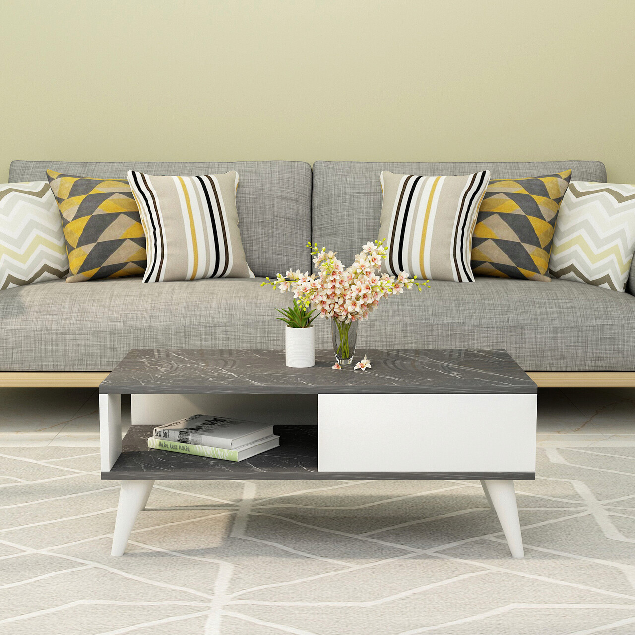 Masuta de cafea, Olivia, Seul, 90x40x45 cm, PAL , Alb/Negru