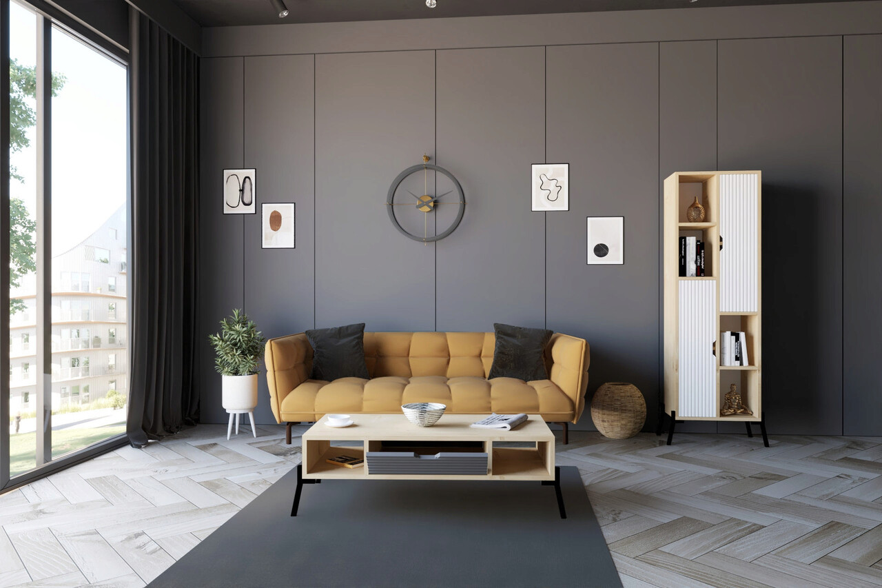 Masuta de cafea, Puqa Design, Faro, 100x28 cm, PAL, Stejar safir / Antracit