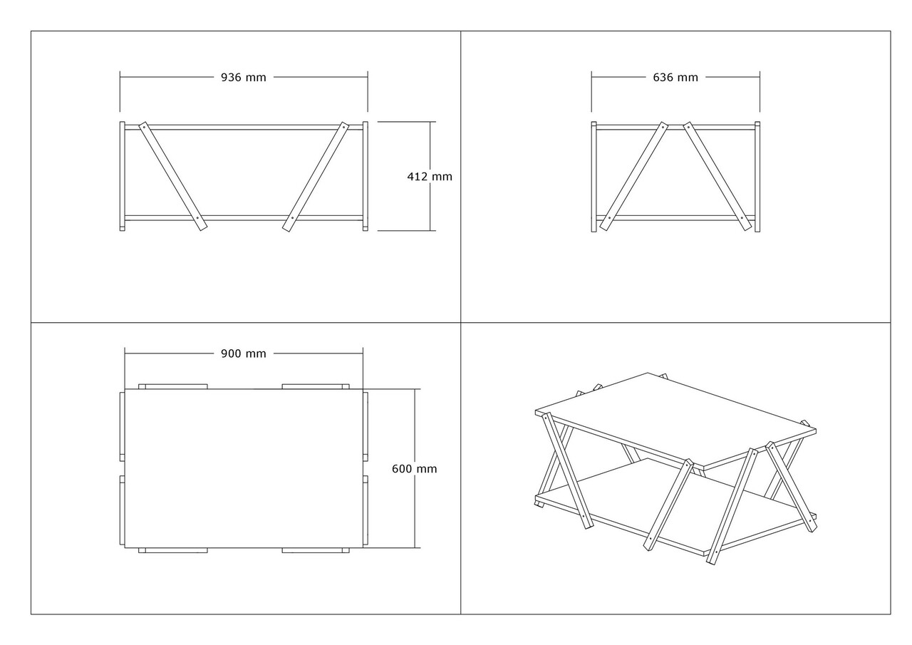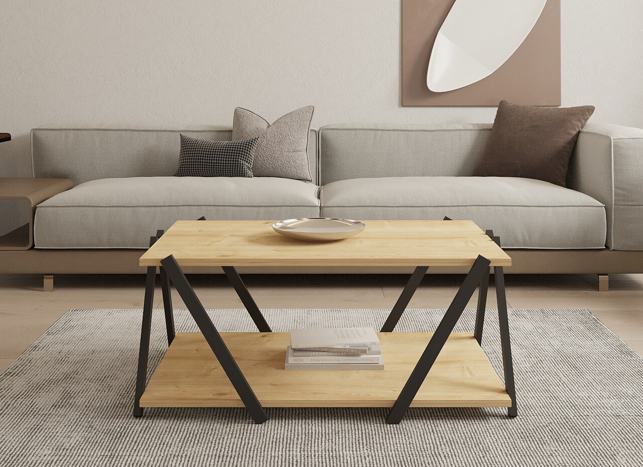 Masuta de cafea, Puqa Design, Lara, 93.6x41.2x63.6 cm, PAL, Stejar antracit / safir