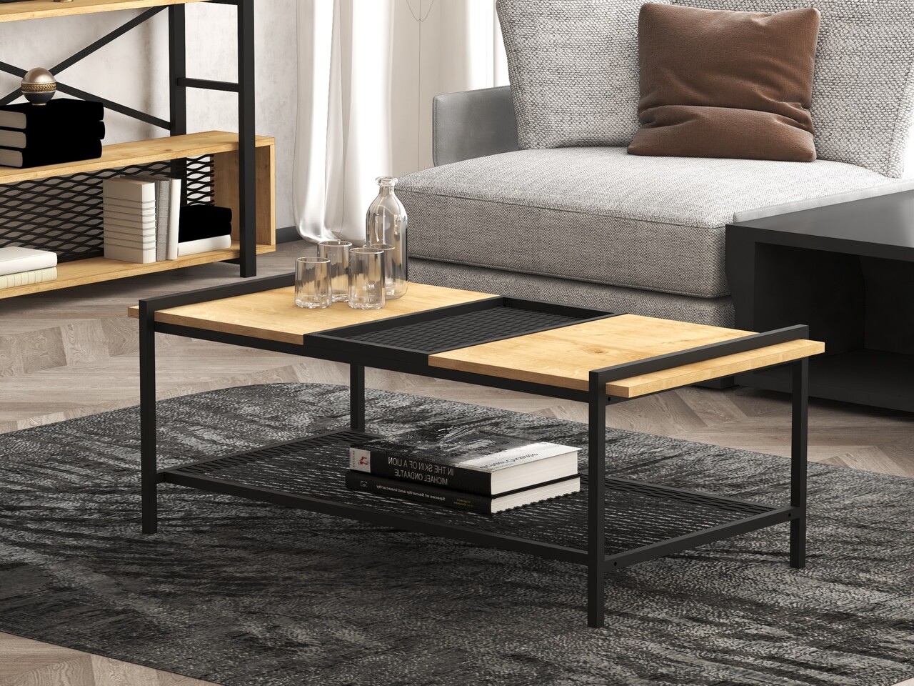 Masuta de cafea, Puqa Design, Mata, 120x45x56 cm, PAL, Nuc / Negru