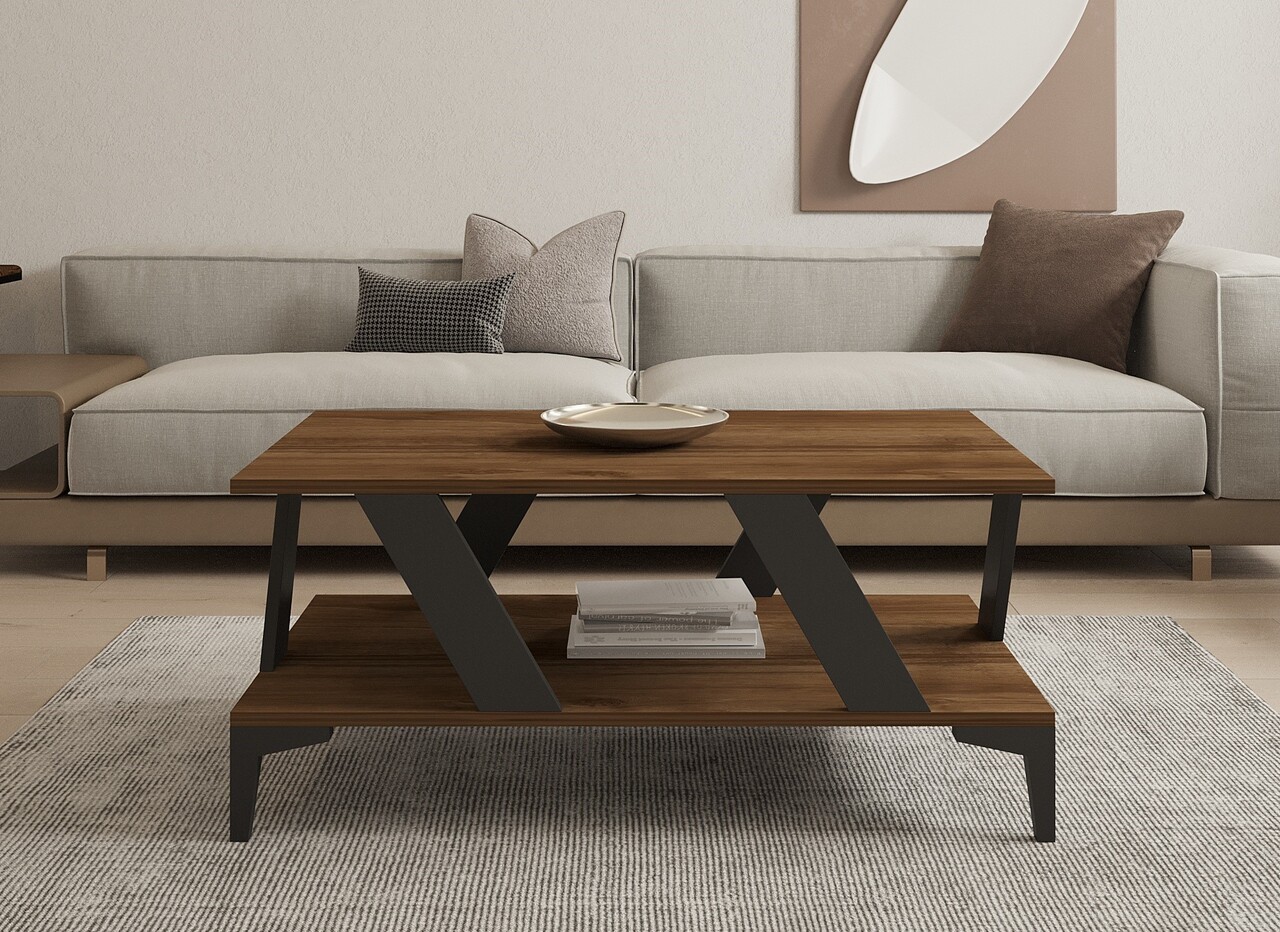Masuta de cafea, Puqa Design, Tabla, 100x40x60 cm, PAL, Antracit / Nuc