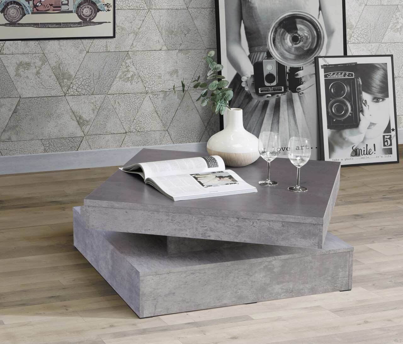 Masuta de cafea rotativa Capelle, Bedora, 78x78x35 cm, PAL, gri deschis