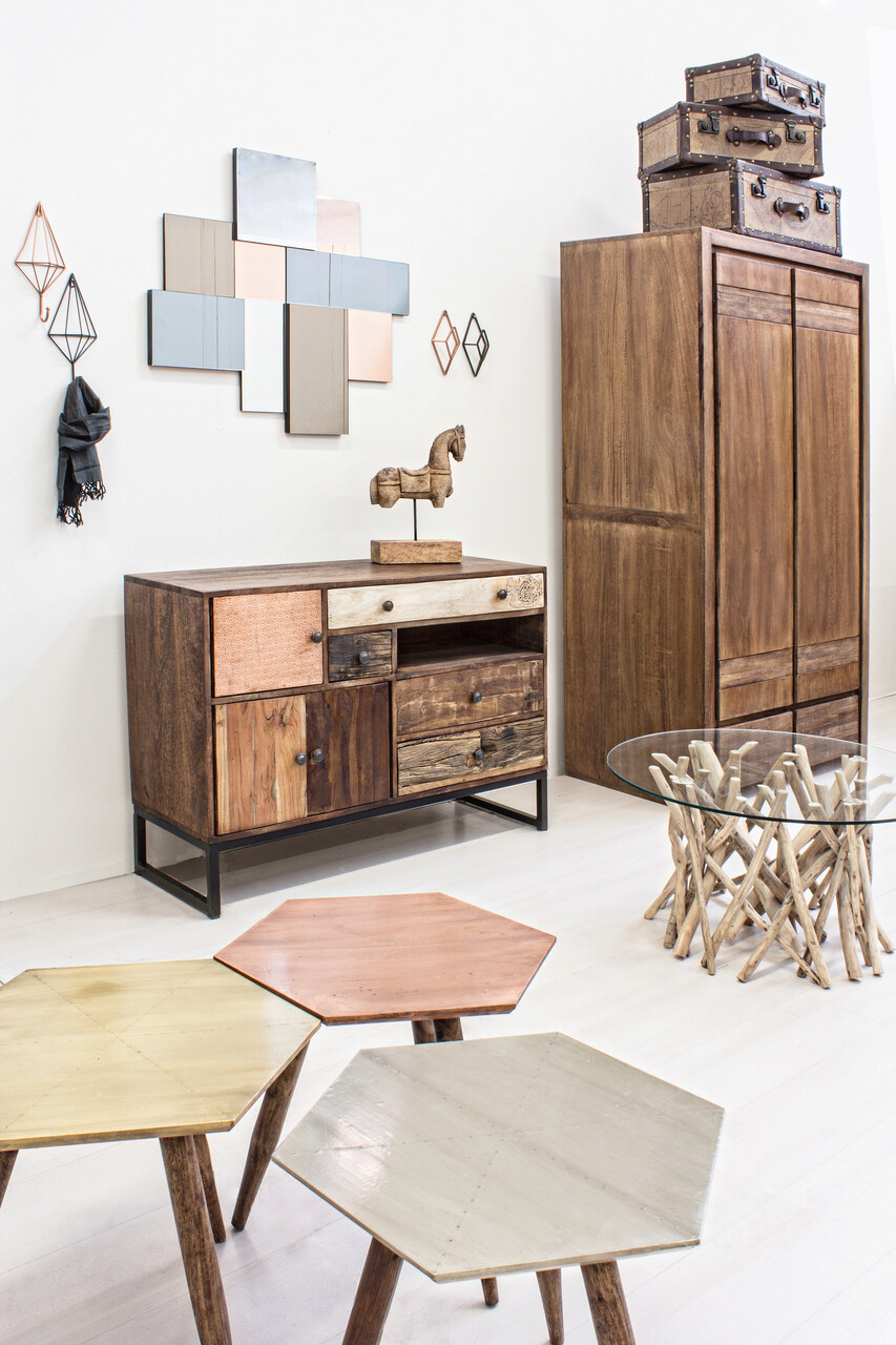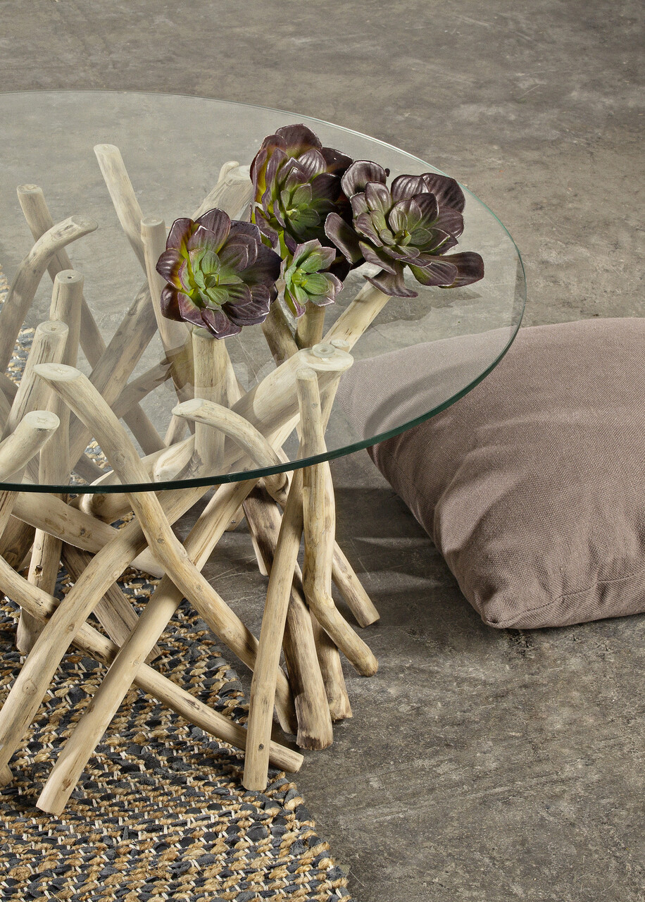 Masuta de cafea Samira, Bizzotto, 80 x 80 x 40 cm, ramuri de tec/sticla temperata, natural