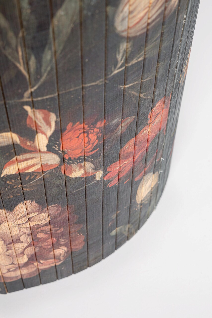 Cadru din bambus, partea superioara si baza din MDF, suruburi din otel. Produsul necesita asamblare.