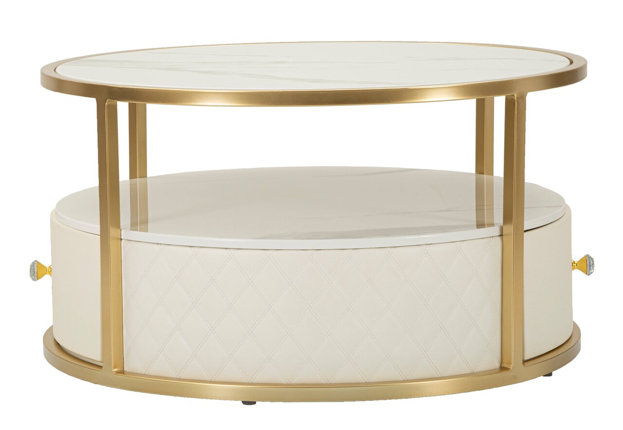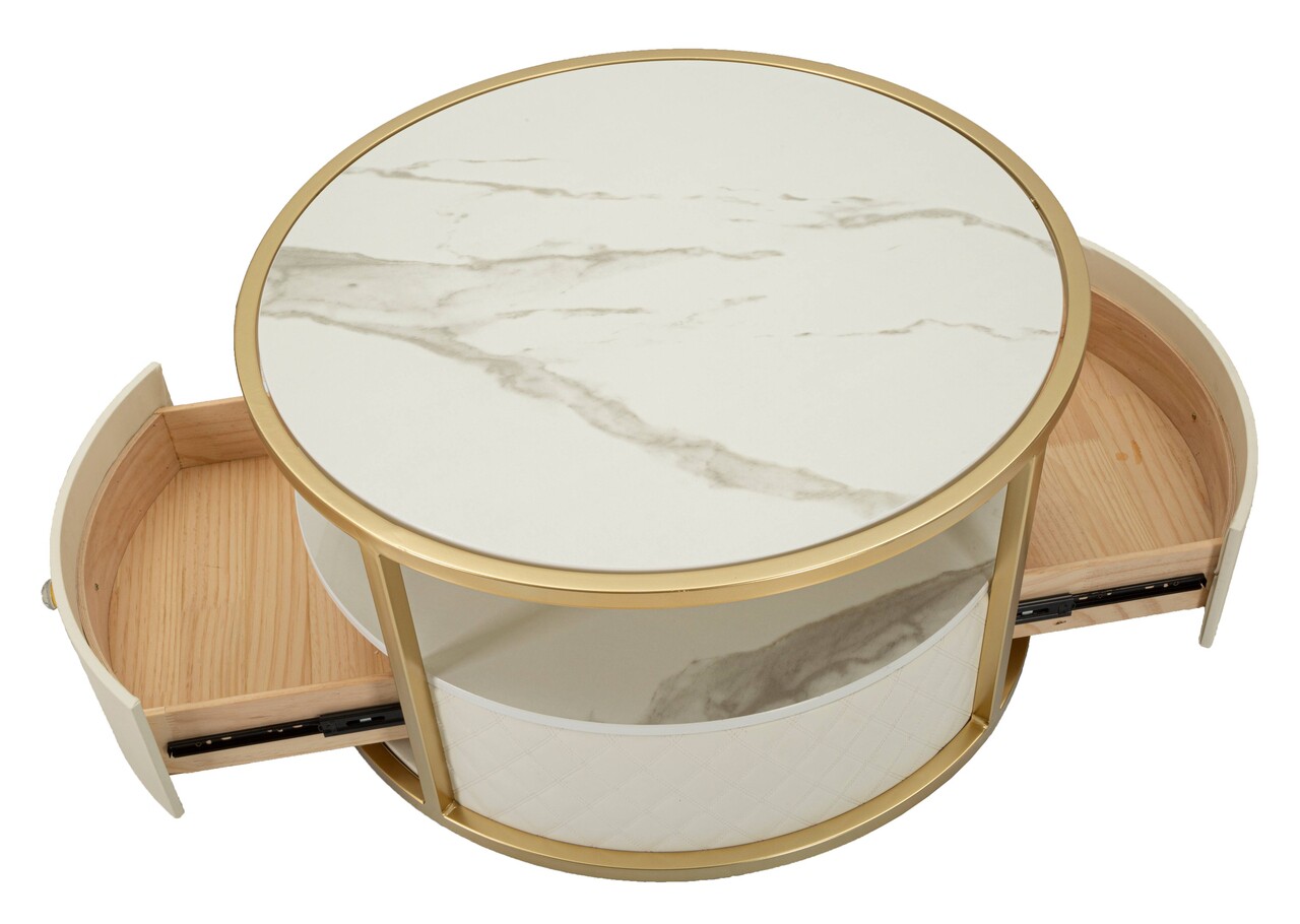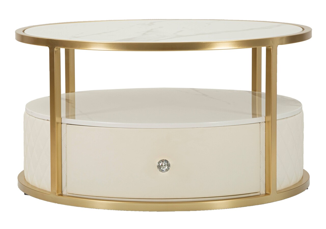 Masuta de cafea Sharon, Mauro Ferretti, 75x75x40 cm, lemn de pin/MDF/metal, alb/auriu