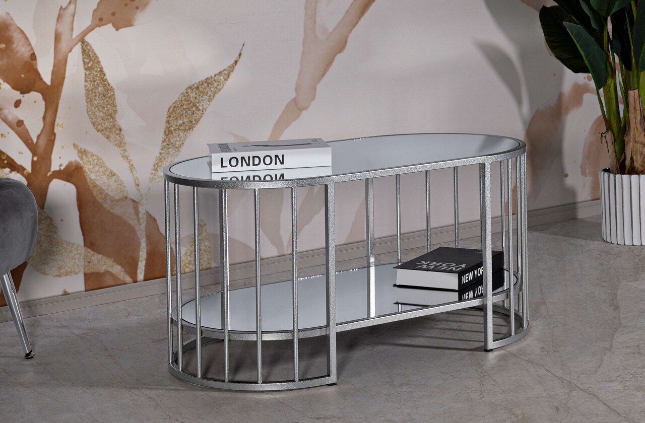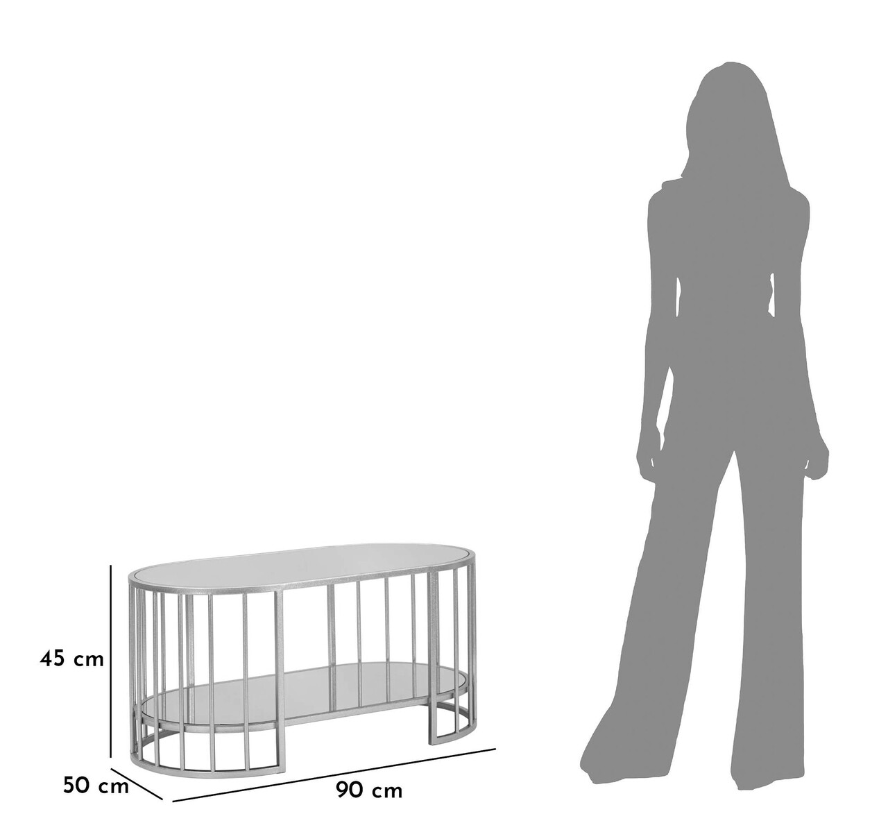 Masuta de cafea Smirne, Mauro Ferretti, 90x50x45 cm, fier/oglinda, argintiu