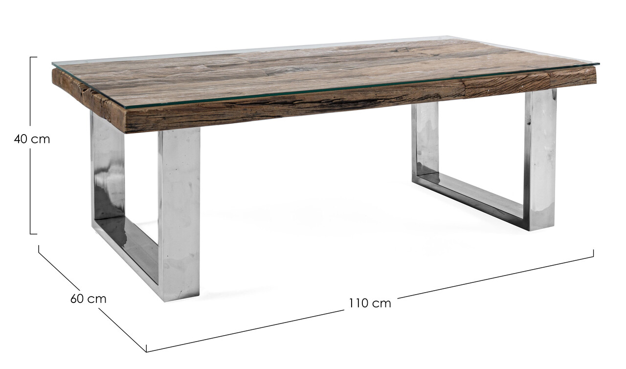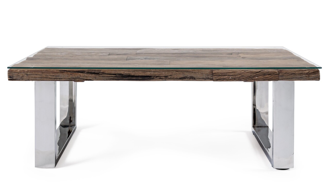 Masuta de cafea Stanton, Bizzotto, 110x60x40 cm, lemn reciclat/sticla temperata/inox