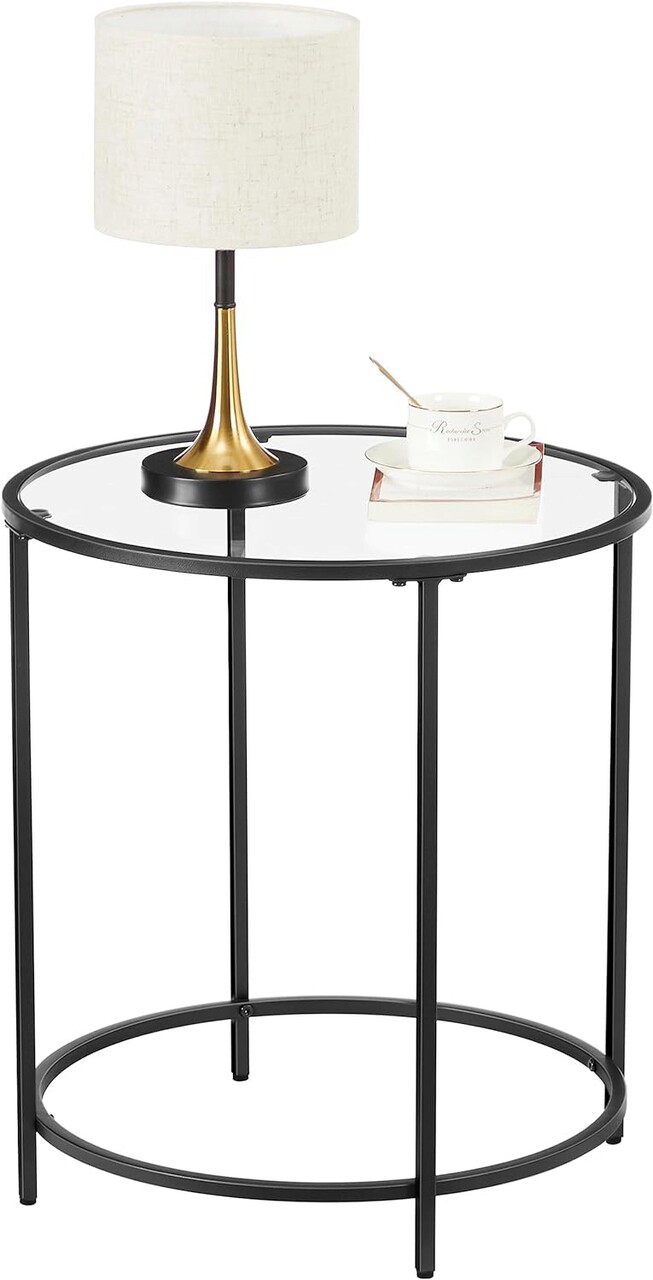 Masuta de cafea Vasagle, 50x50x55 cm, otel/sticla temperata, negru
