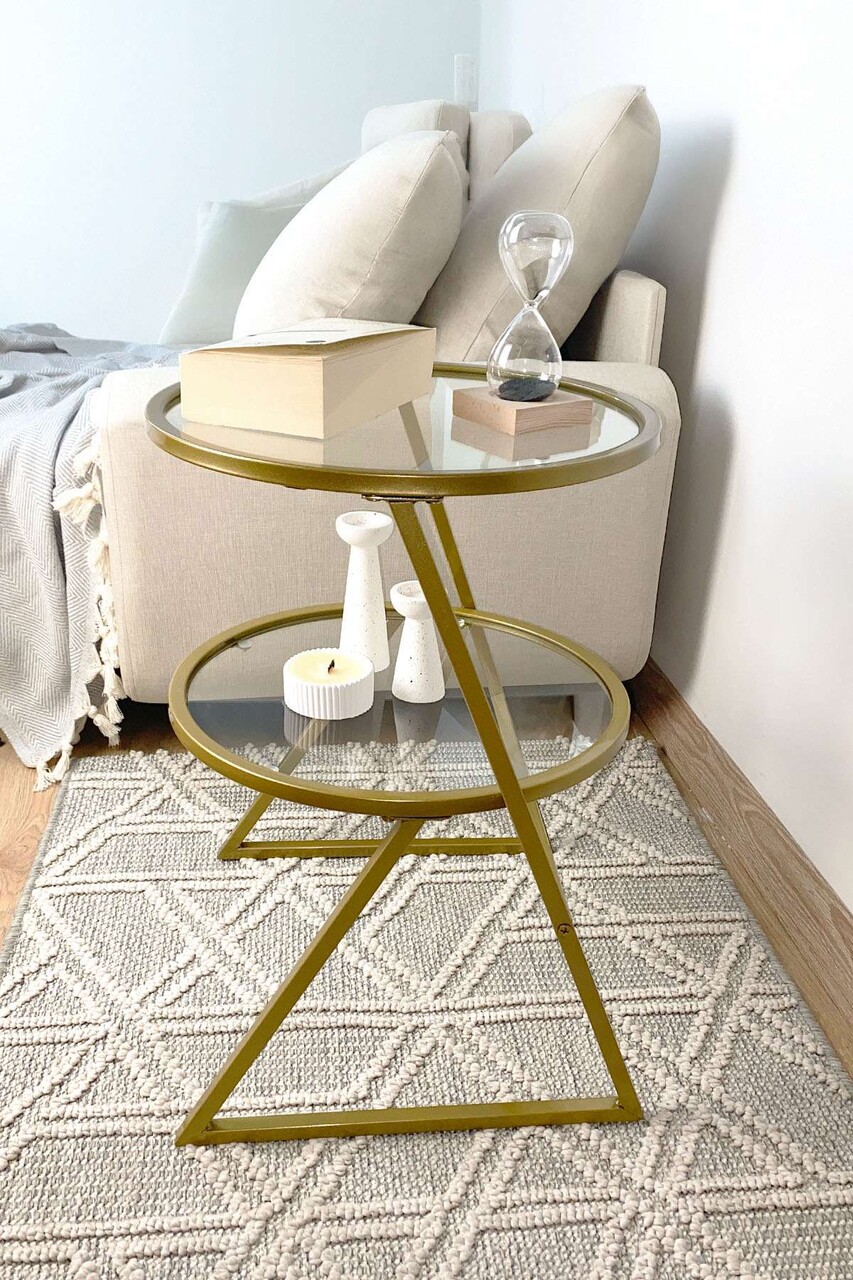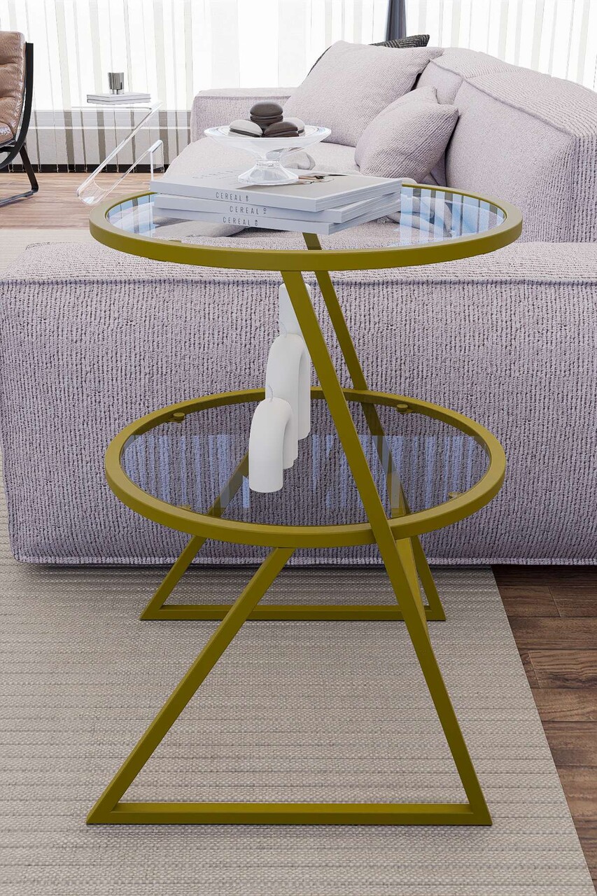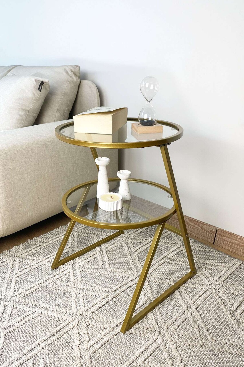 Masuta, Hanah Home, Valencia, 42x55x42 cm, Sticla temperata, Auriu