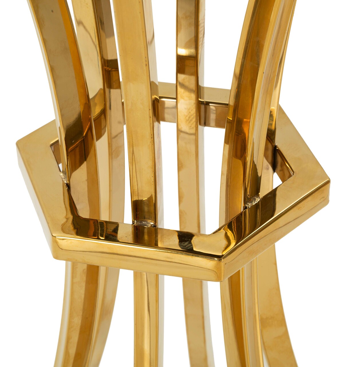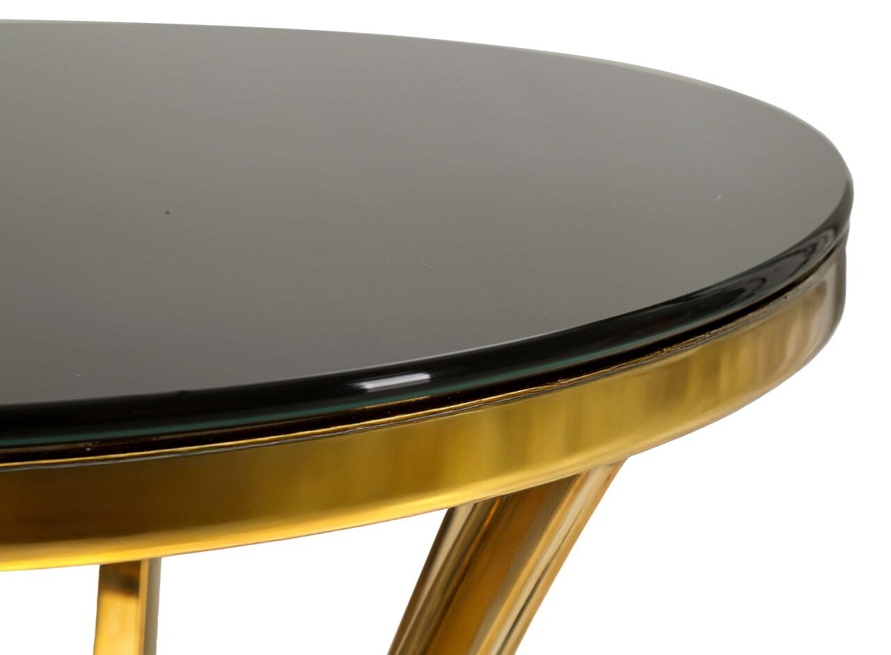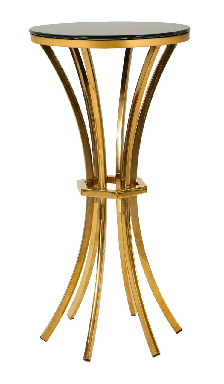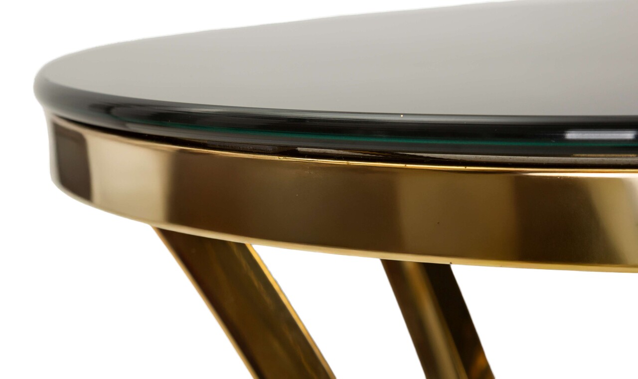 Cu baza aurie si blat din sticla, aduce o nota fina si chic in orice incapere. Un detaliu de efect pentru un decor modern.