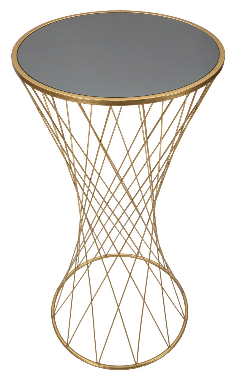 Masuta rotunda din metal auriu, cu linii simple si elegante, cu blat din sticla oglindita. Diametru blat: 47 cm. Compozitie material: fier, MDF, oglinda