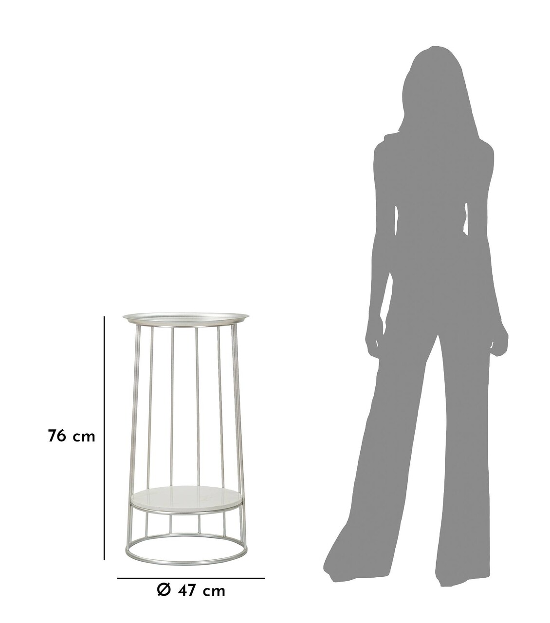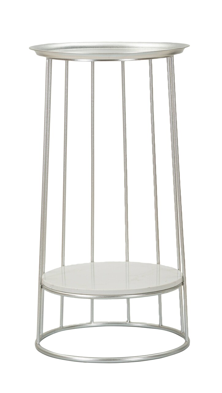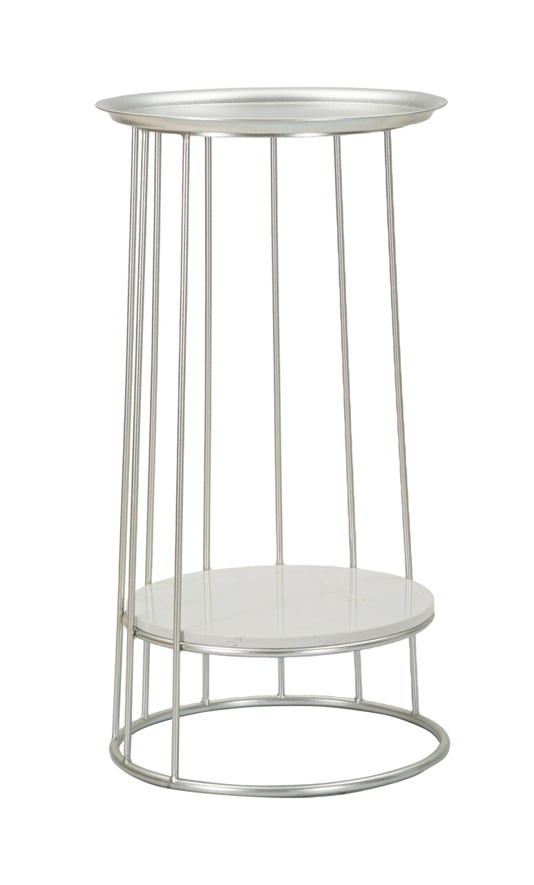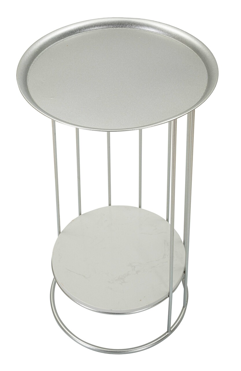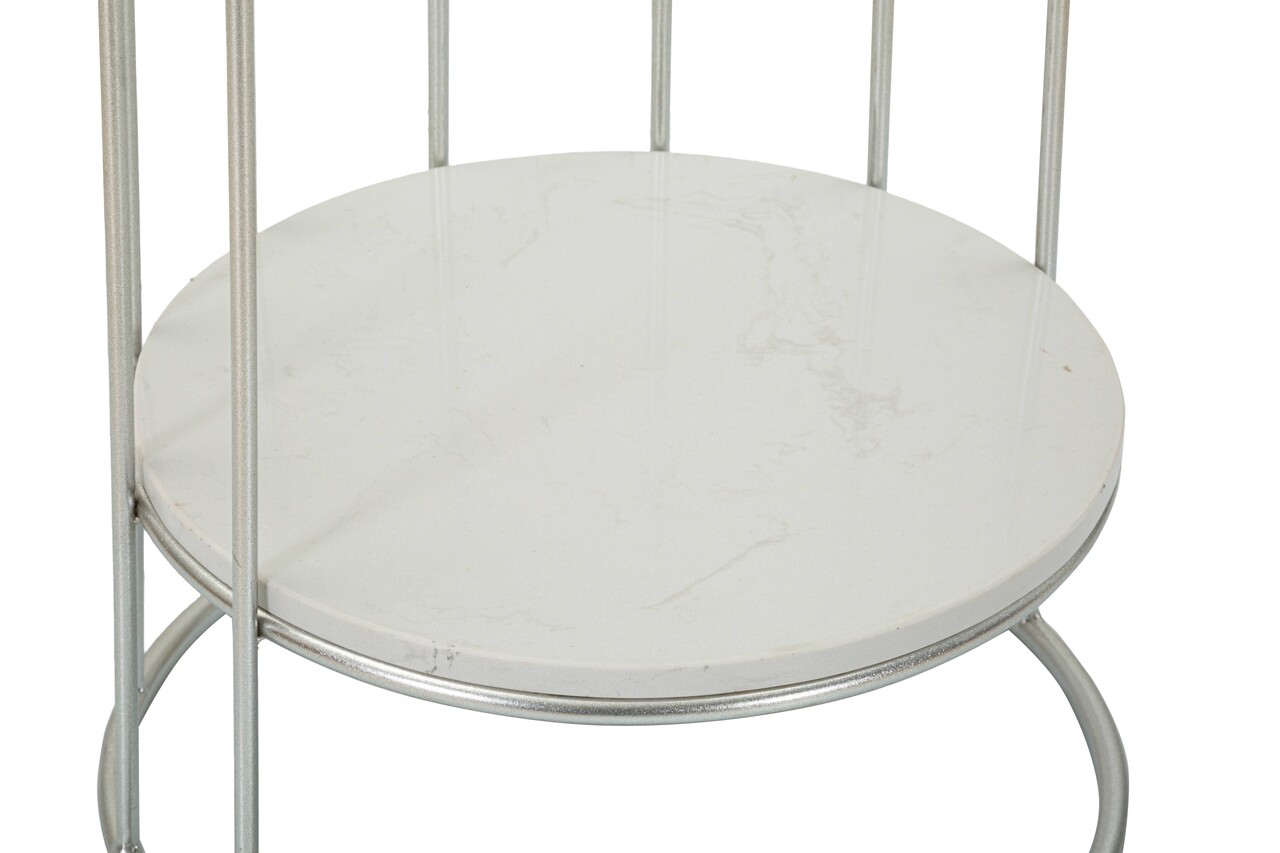 Masuta inalta Towery, Mauro Ferretti, 40x40x76 cm, fier/marmura, argintiu