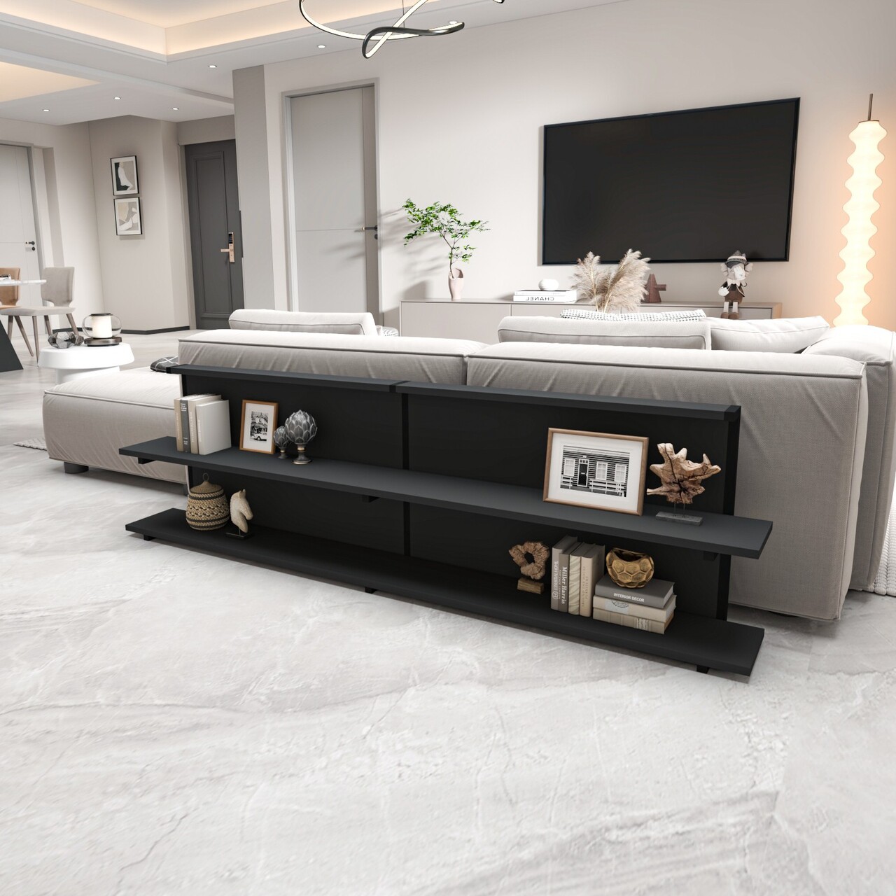 Masuta, Inarch, Mela, 180x52x22 cm, 100% PLANCĂ DE PARTICLE ȘI METAL CU MELAMINĂ , Antracit