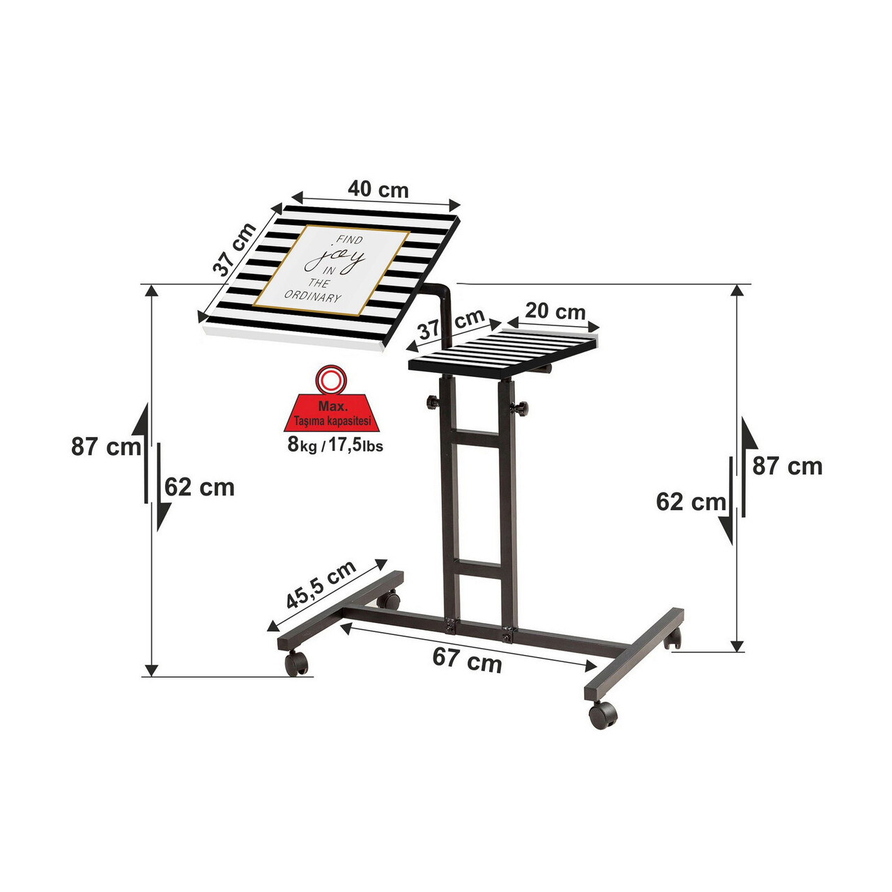 Dimensiune reglabilă a mesei: Latime: 37 cm Inaltime: 87 cm Adancime: 40 cm