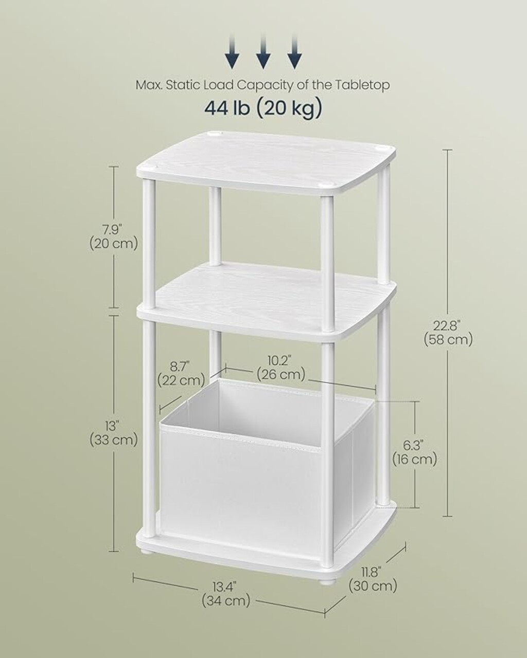 Depozitare generoasa Cu 3 rafturi si un cos textil suplimentar, aceasta masuta laterala ofera un spatiu generos de depozitare - o solutie de depozitare ideala pentru lucrurile dvs. marunte!