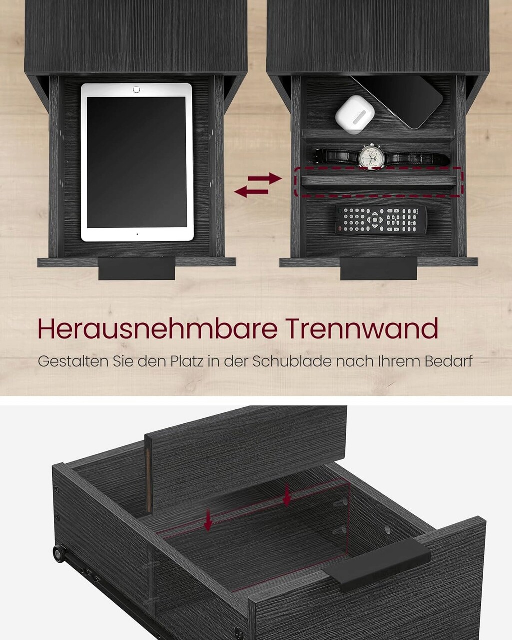 Potrivita pentru spatii mici Cu dimensiunile de 60 x 35 x 61 cm (D x l x H), aceasta noptiera ingusta se potriveste cu usurinta in spatiile dintre scaune, langa canapea sau patul dvs.