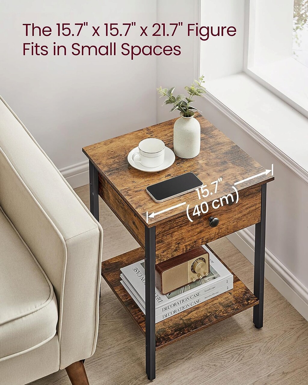 Masuta living / noptiera Vasagle, Vincyer, 40 x 40 x 50 cm, PAL/fier, maro rustic