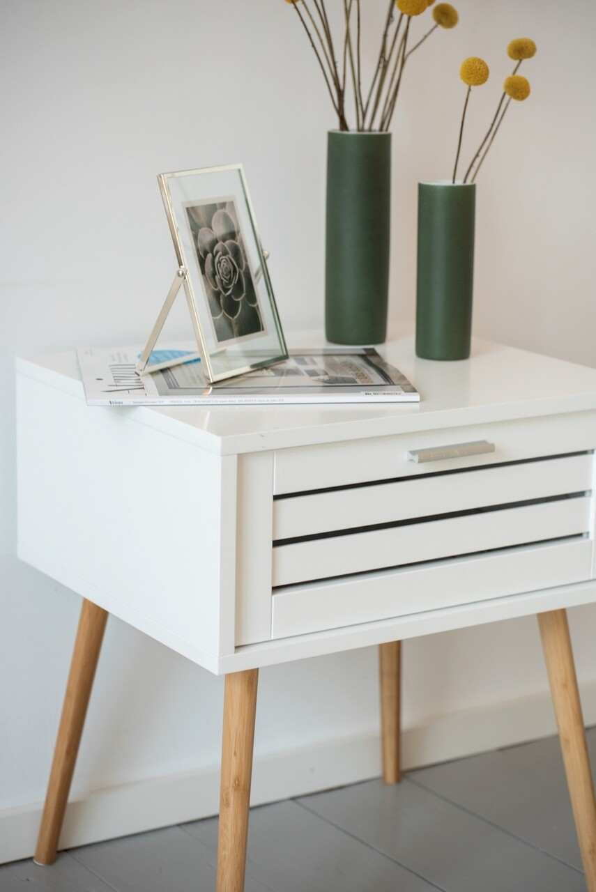 Masuta multifunctionala, Wenko, Finja, 38 x 50 x 45 cm, bambus/mdf, alb/natur