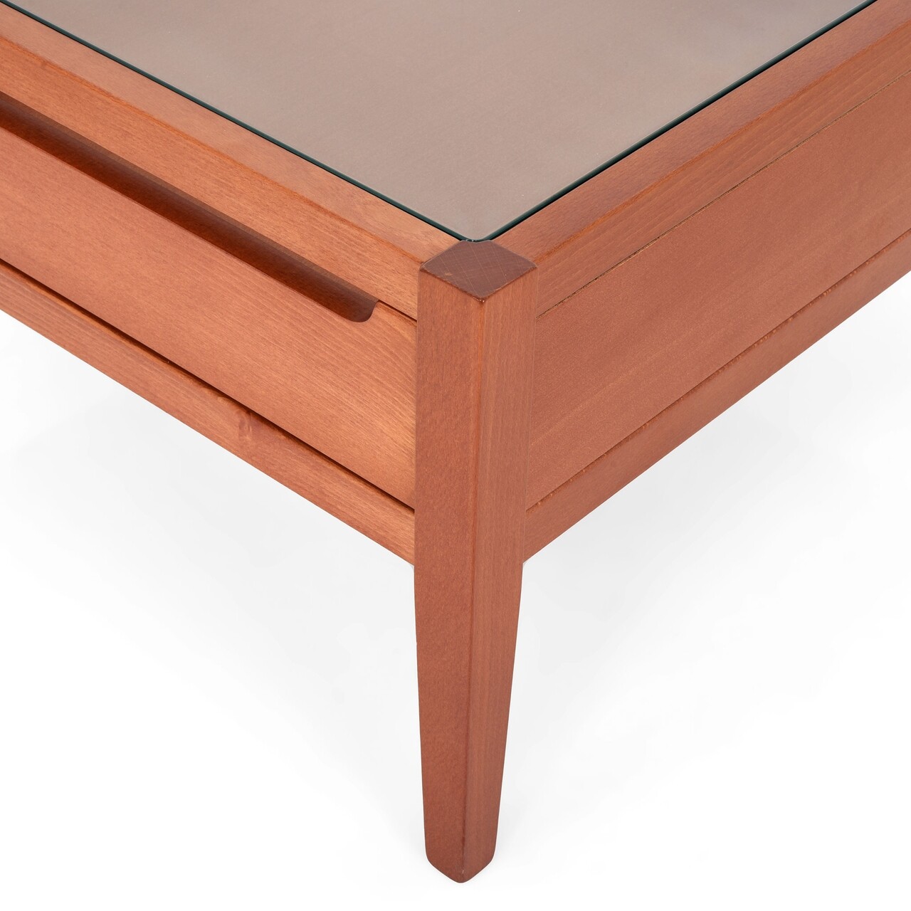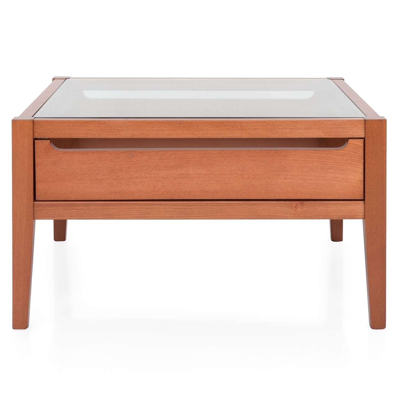 Masuta pentru cafea cu sertar, Rosa, 70 x 70 x 40 cm, MDF/sticla, cires