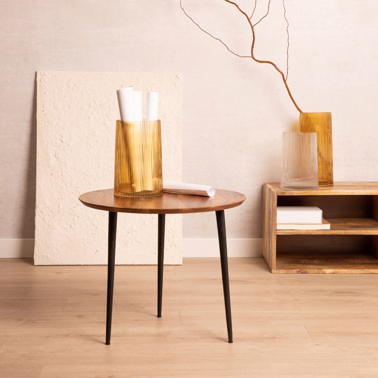 Masuta de cafea REN este o piesa de mobilier atat practica, cat si estetica! Blatul din lemn, cu noduri si decolorari naturale, ii confera un caracter unic si autentic iar picioarele metalice adauga un contrast modern, cu un aer usor industrial. Este ideala pentru a completa spatiul de langa canapea, perfecta pentru momentele de relaxare, fie ca savurezi cafeaua dimineata, socializezi cu un prieten sau te distrezi cu familia. Posibilitatea de a adauga mese mai mici din aceeasi serie este o idee grozava pentru a extinde spatiul si a face intalnirile mai confortabile si mai placute. In ansamblu, aceasta masuta de cafea este un punct de atractie care imbina functionalitatea cu designul modern!