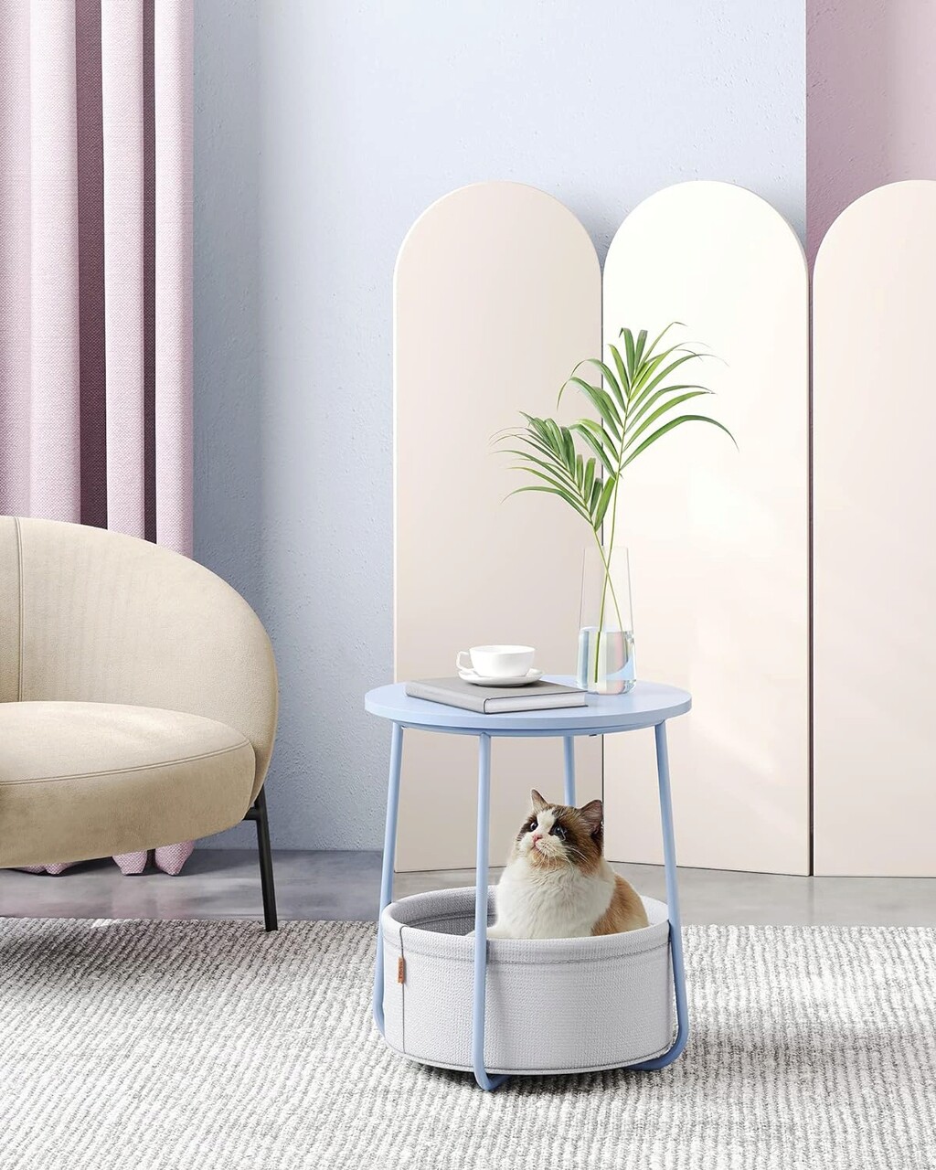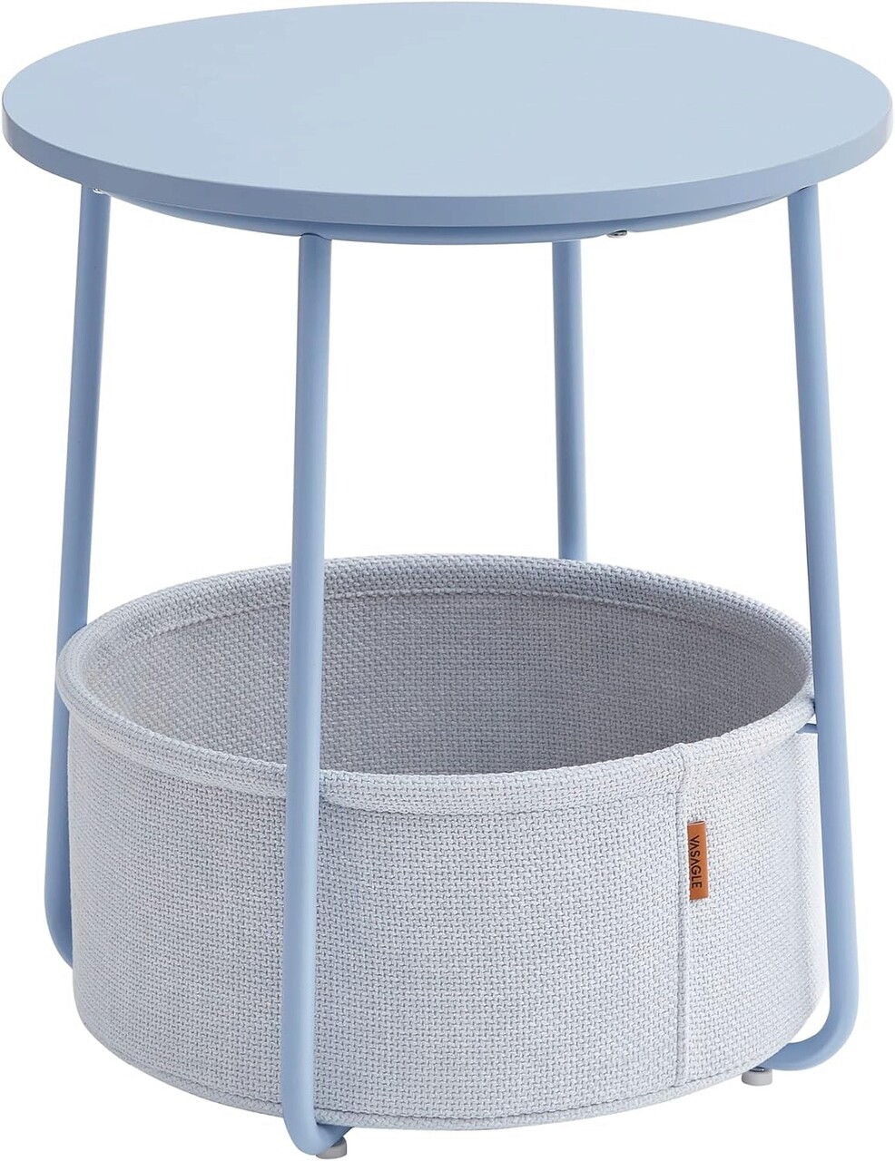 Masuta pentru cafea Vasagle, D45 x 51 cm, PAL/otel/poliester, albastru deschis/bej