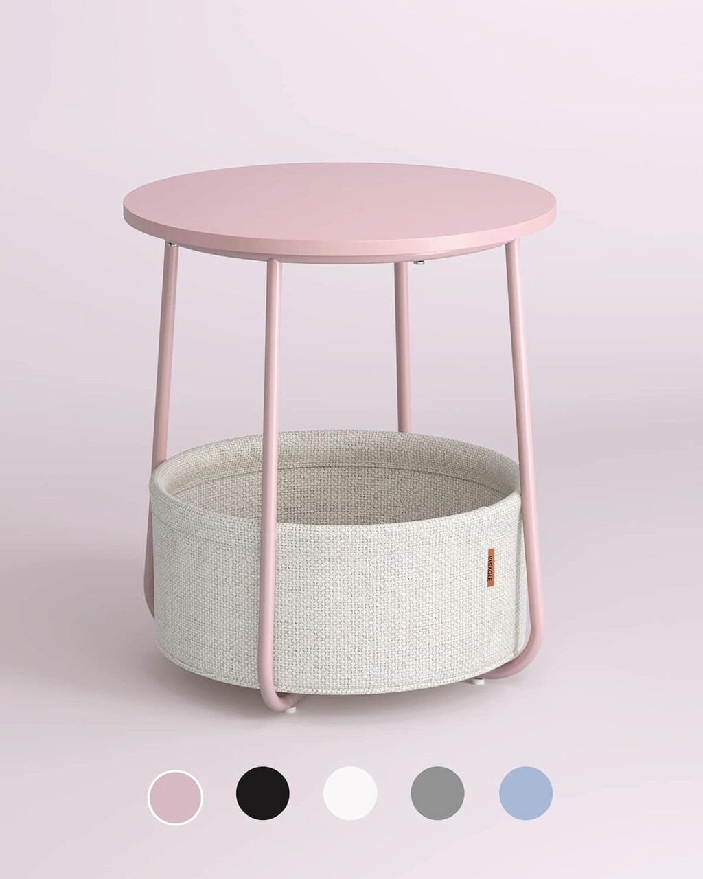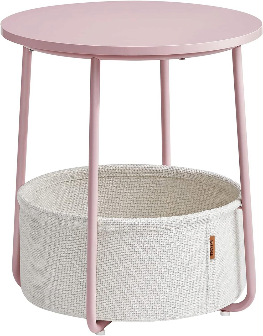 Masuta pentru cafea Vasagle, D45 x 51 cm, PAL/otel/poliester, roz/bej
