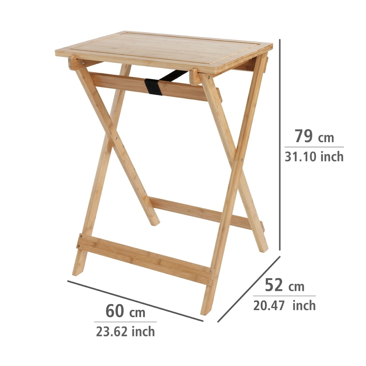 Masuta pliabila cu blat detasabil, Wenko, Lugo, 52 x 79 x 60 cm, bambus, maro