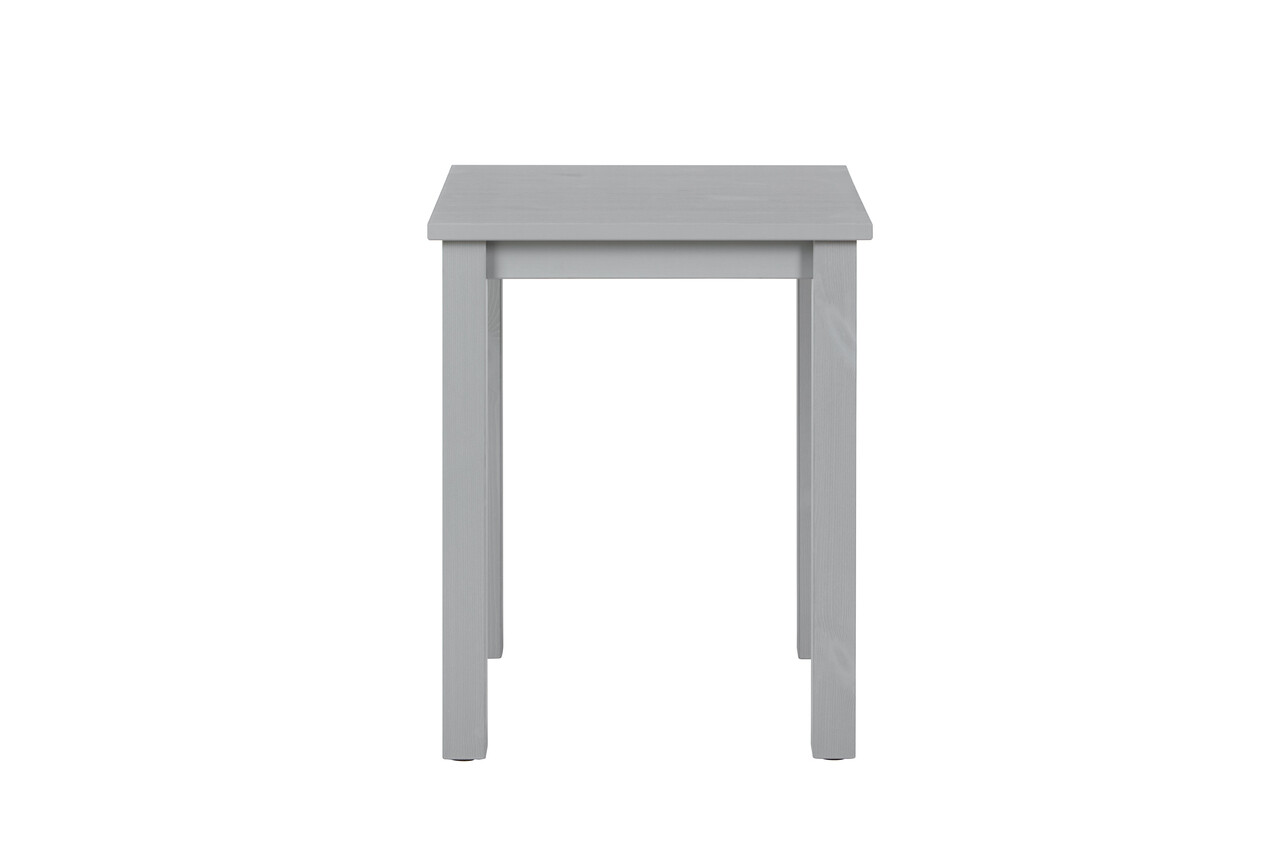 Aceasta masuta laterala este fabricata din lemn masiv si finisata cu un lac gri. Fibrele sunt inca usor vizibile, evidentiind caracterul natural al lemnului. Lemnul de plantatie sustenabil, ecologic si organic ofera caldura, confort si o atmosfera primitoare. Experimentati senzatia pura a lemnului natural autentic.