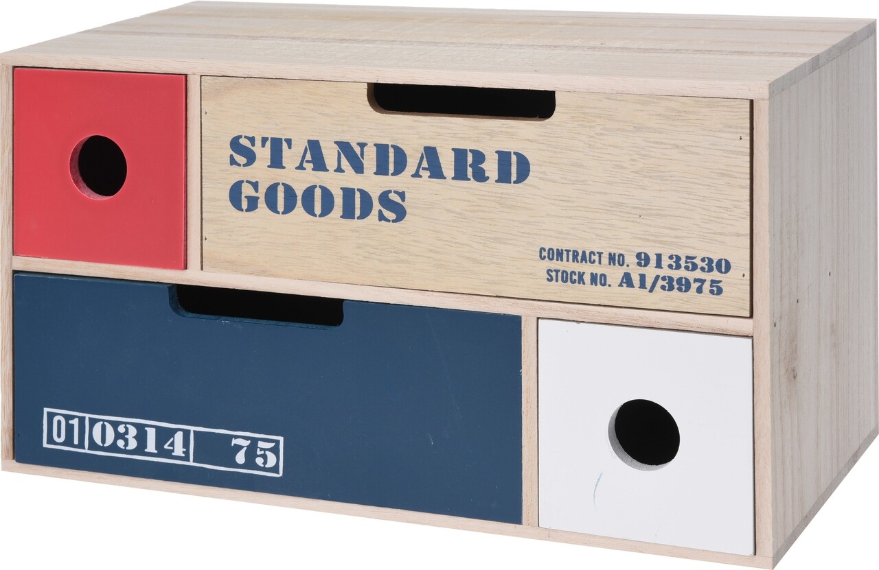 Mini dulap pentru depozitare, 29.5x15x17 cm, 4 sertare, lemn, multicolor