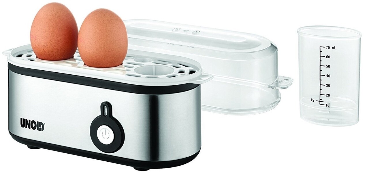 Prepararea micului dejun in fiecare dimineata a devenit mult mai usoara acum datorita mini fierbatorului automat de oua, marca Unold. Cu acesta puteti gati pana la 3 oua moi sau tari, dupa preferinta. Gatitul este controlat electronic pentru obtinerea unor oua perfecte.