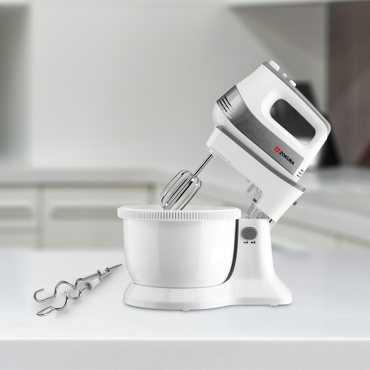 Mixerul de mana cu bol rotativ, MarcaZokura, Va ajuta sa preparati rapid si fara efort, Aluaturi si creme delicioase, Ca un bucatar profesionist.