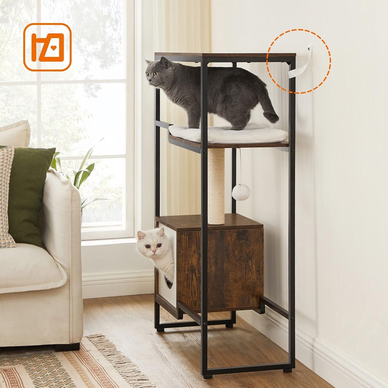 Mobilier 2in1 pentru pisici cu culcus si stalp pentru zgariat, Feandrea, 74x34x114 cm, PAL/otel/sisal, maro