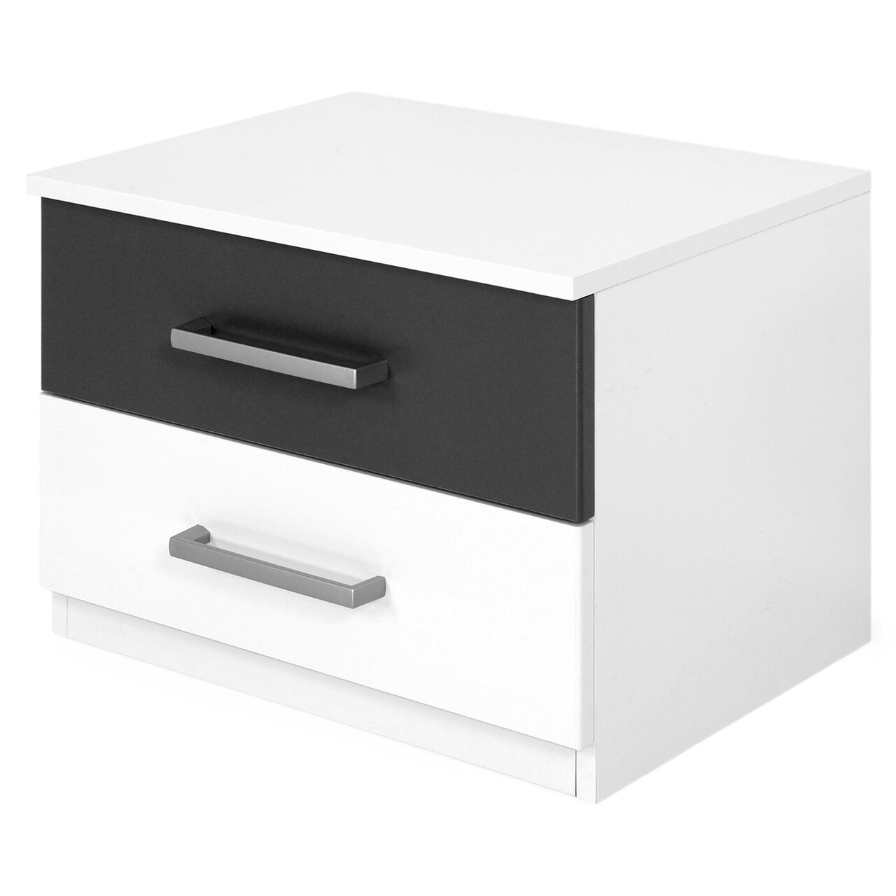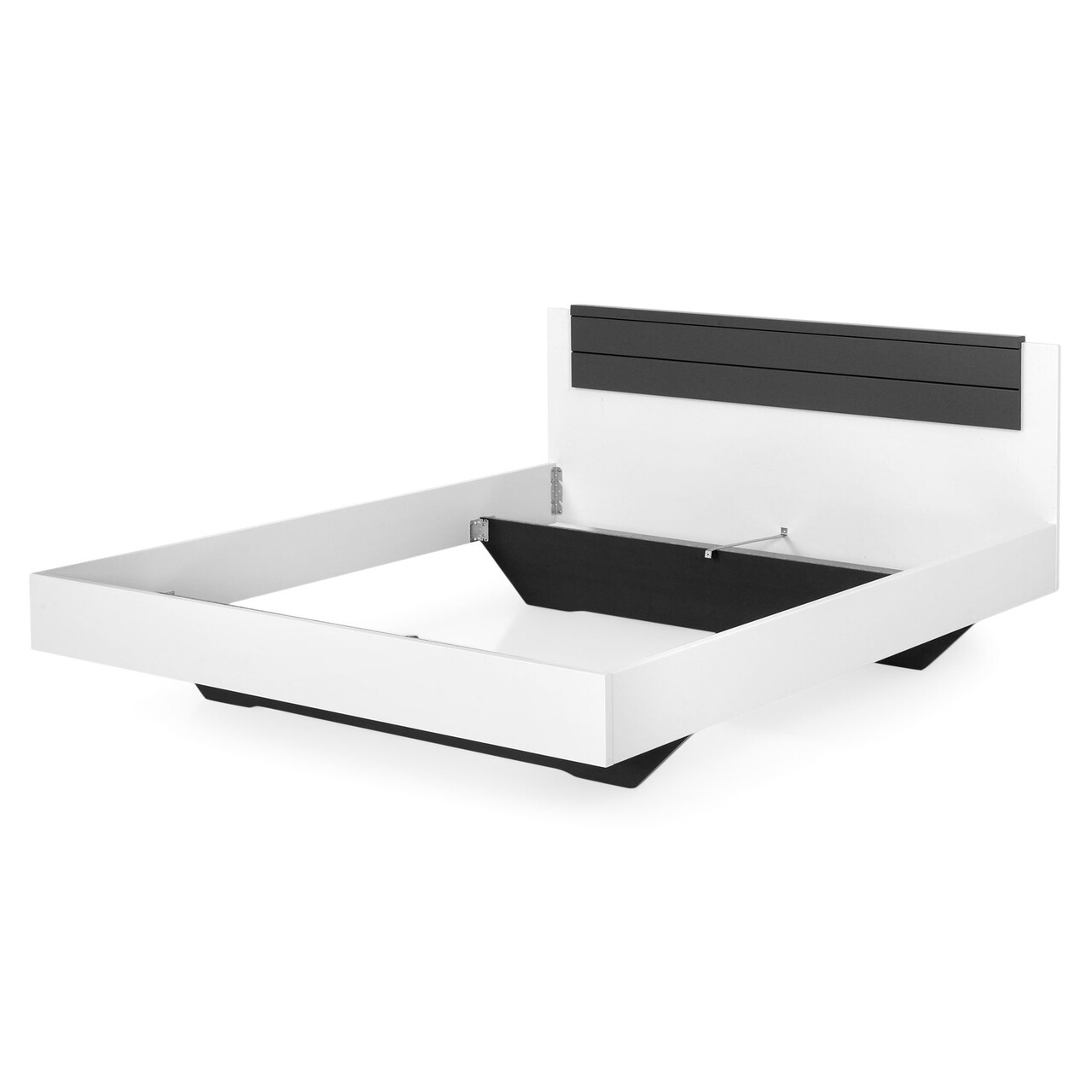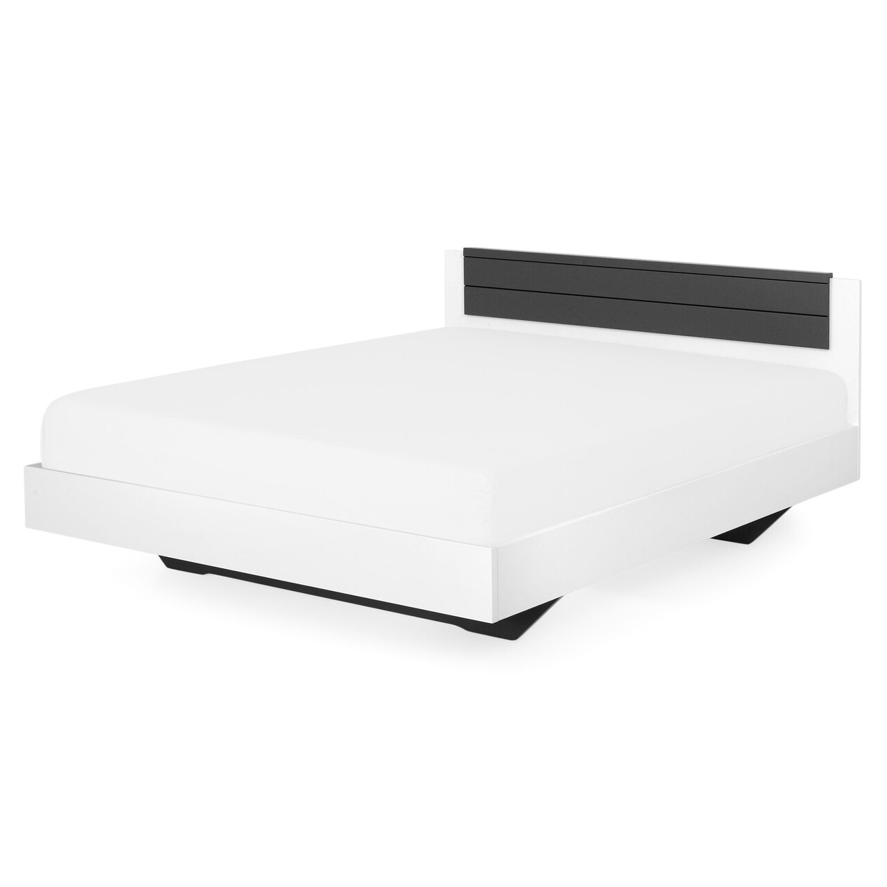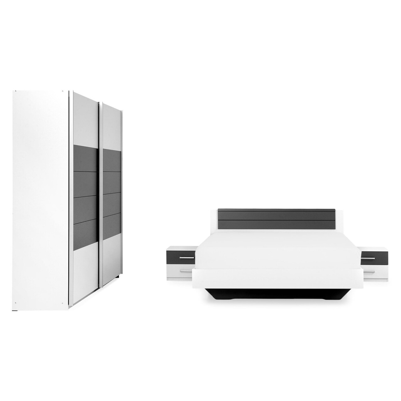 Mobilier dormitor, dulap + pat + 2 noptiere, Dover, PAL, alb/gri
