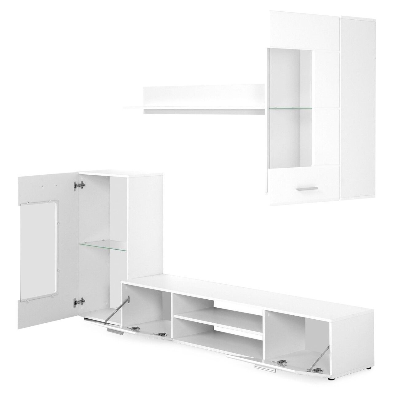 Mobilier living, 4 piese, Shine, 230 x 40 x 190 cm, PAL/MDF, alb lucios