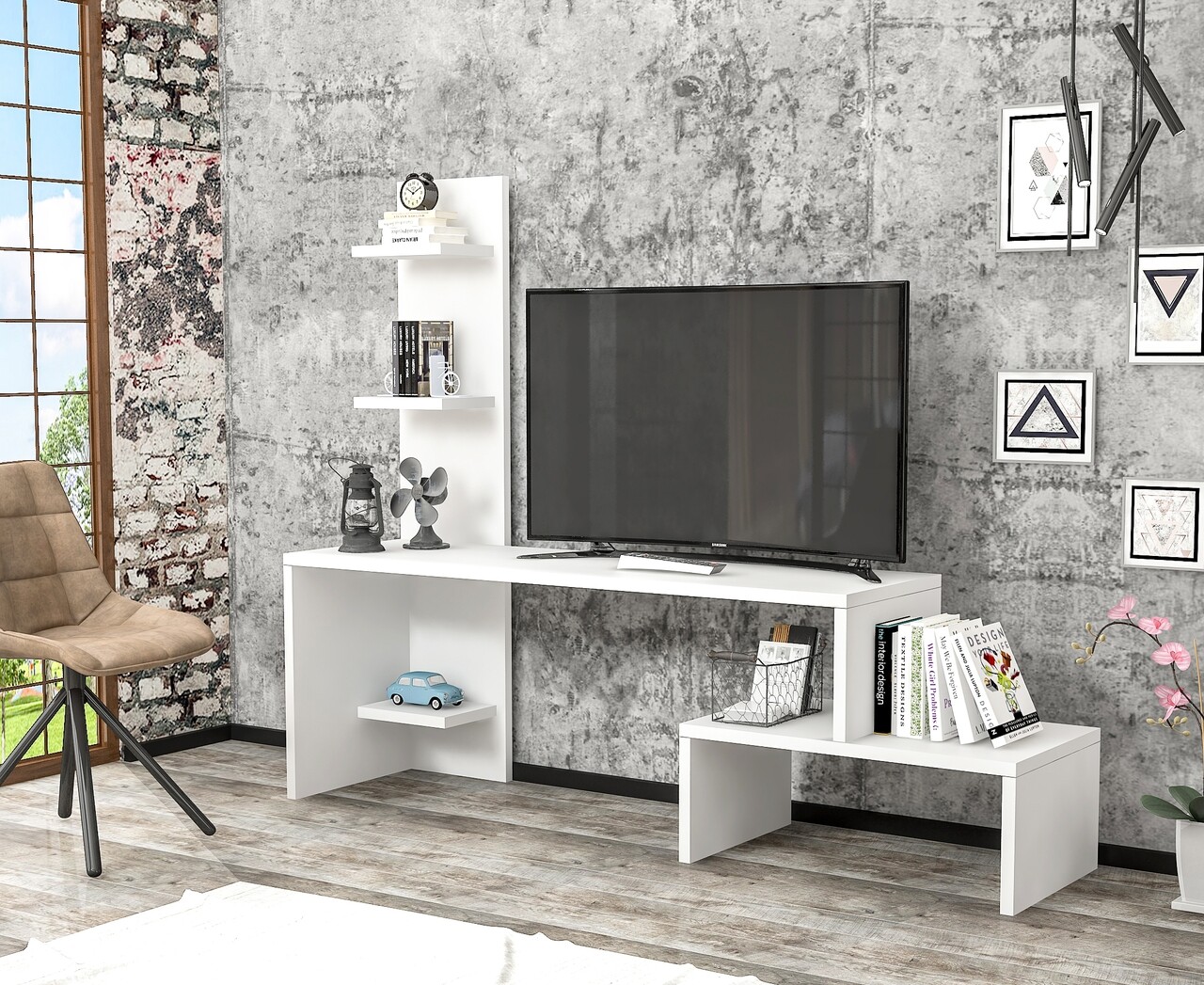 Mobilier living Raffline, 1 corp, 124x30x100 cm, PAL , alb