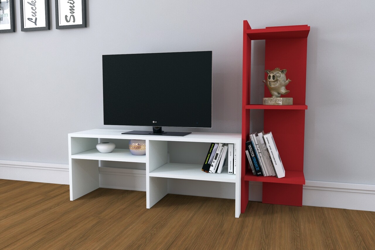 Mobilier living Raffline, 2 corpuri, 136.8x29.5x100 cm, PAL , alb/rosu