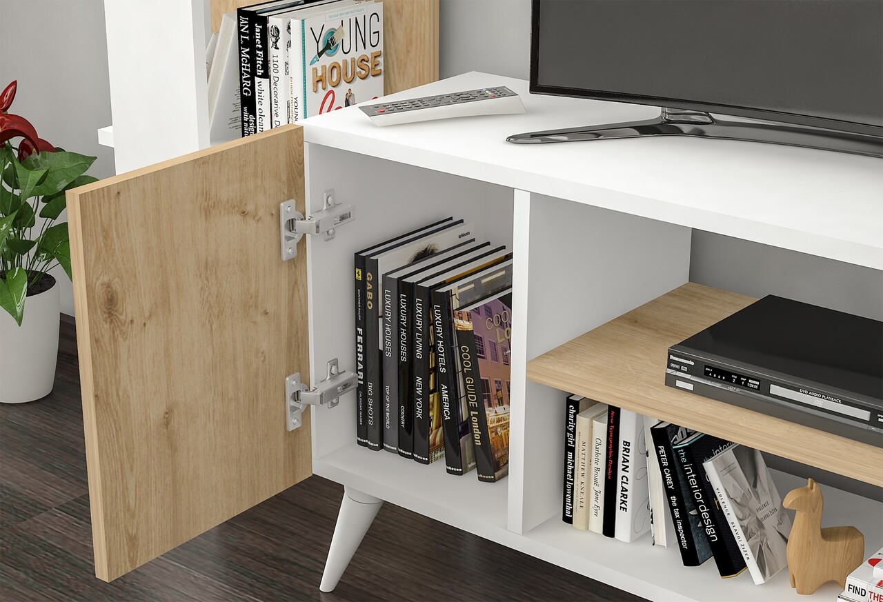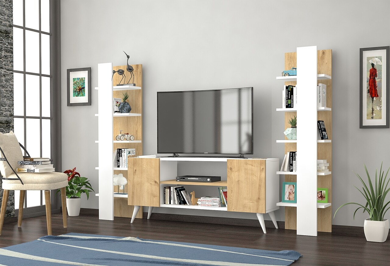 Mobilier living Raffline, 3 corpuri, 100x20x100 cm, PAL , alb/stejar