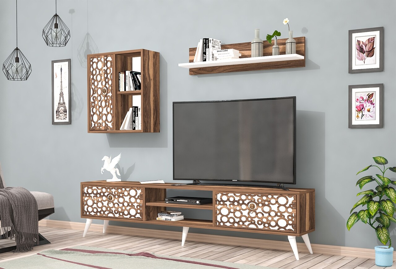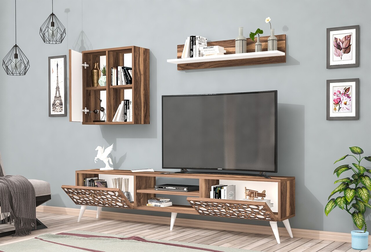 Mobilier living Raffline, 3 corpuri, 90x60x43.6 cm, PAL , alb/nuc