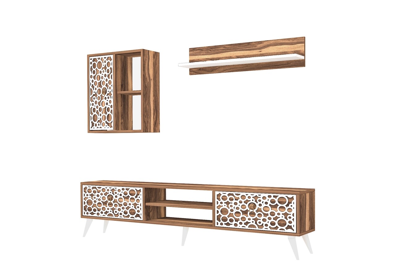 Mobilier living Raffline, 3 corpuri, 90x60x43.6 cm, PAL , nuc/alb