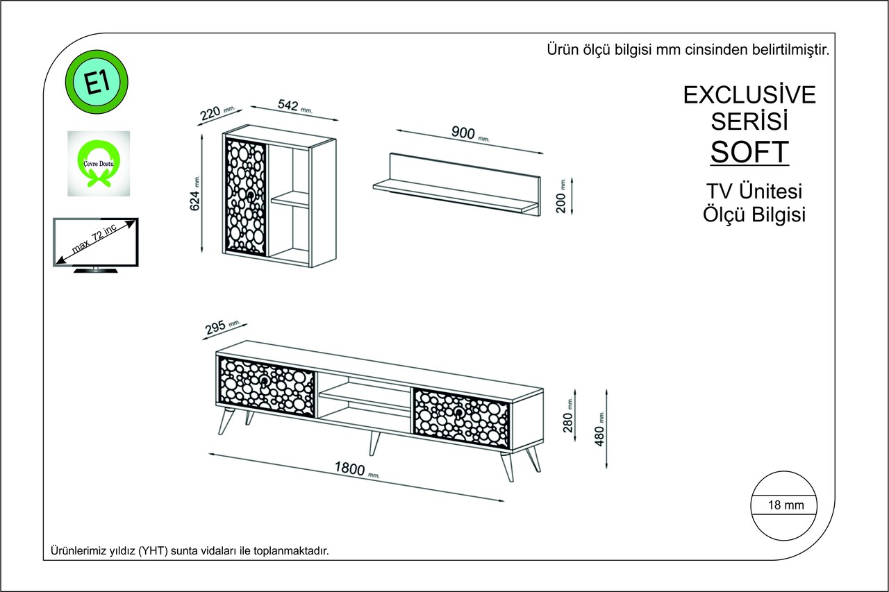 Mobilier living Raffline, 3 corpuri, 90x60x43.6 cm, PAL , verde/nuc