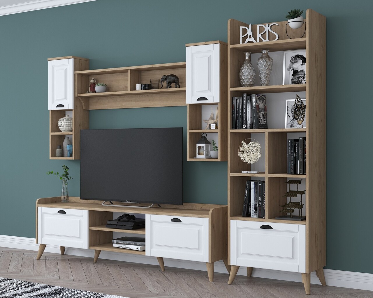 Mobilier living, Wren, AA101 - 2555, 3 corpuri, pal melaminat, alb/nuc