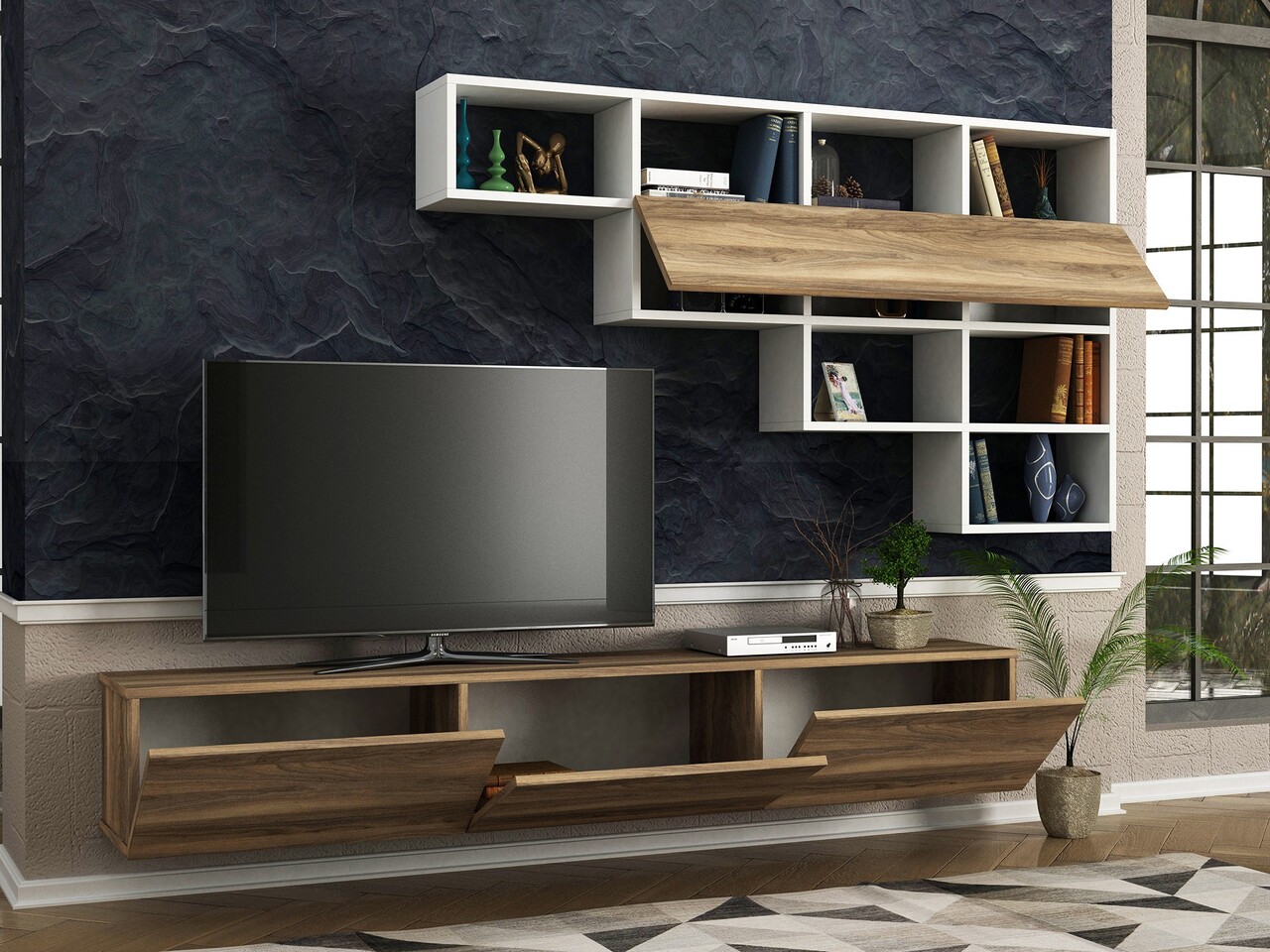 Mobilier pentru living Damla, Tera Home, 2 piese, 180x29.5x29.5 cm, alb/natural
