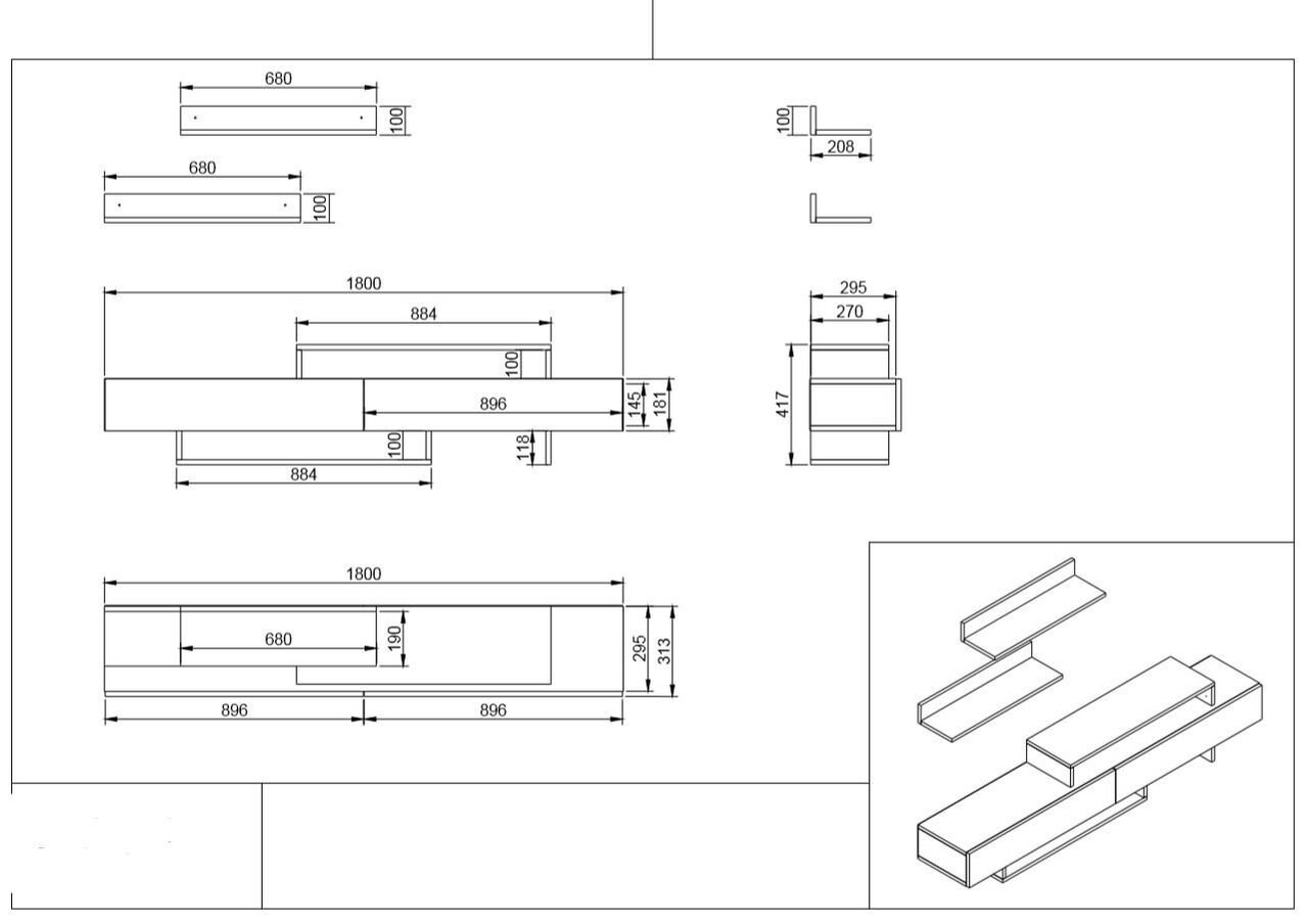- 1 comoda TV cu dimensiunile 180 x 29.5 x H41.7 cm